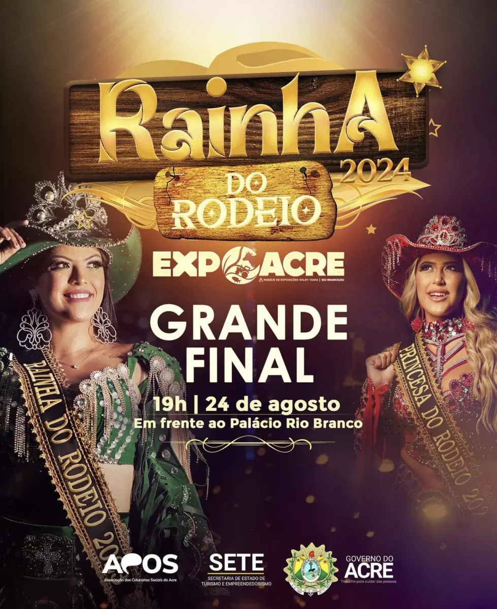 Neste sábado (23), às 19h, o Palácio Rio Branco será palco da aguardada escolha da Rainha do Rodeio da Expoacre 2024. Comemorando 25 anos de tradição, o concurso é um dos eventos mais icônicos da maior feira de negócios do Acre, a Expoacre.
