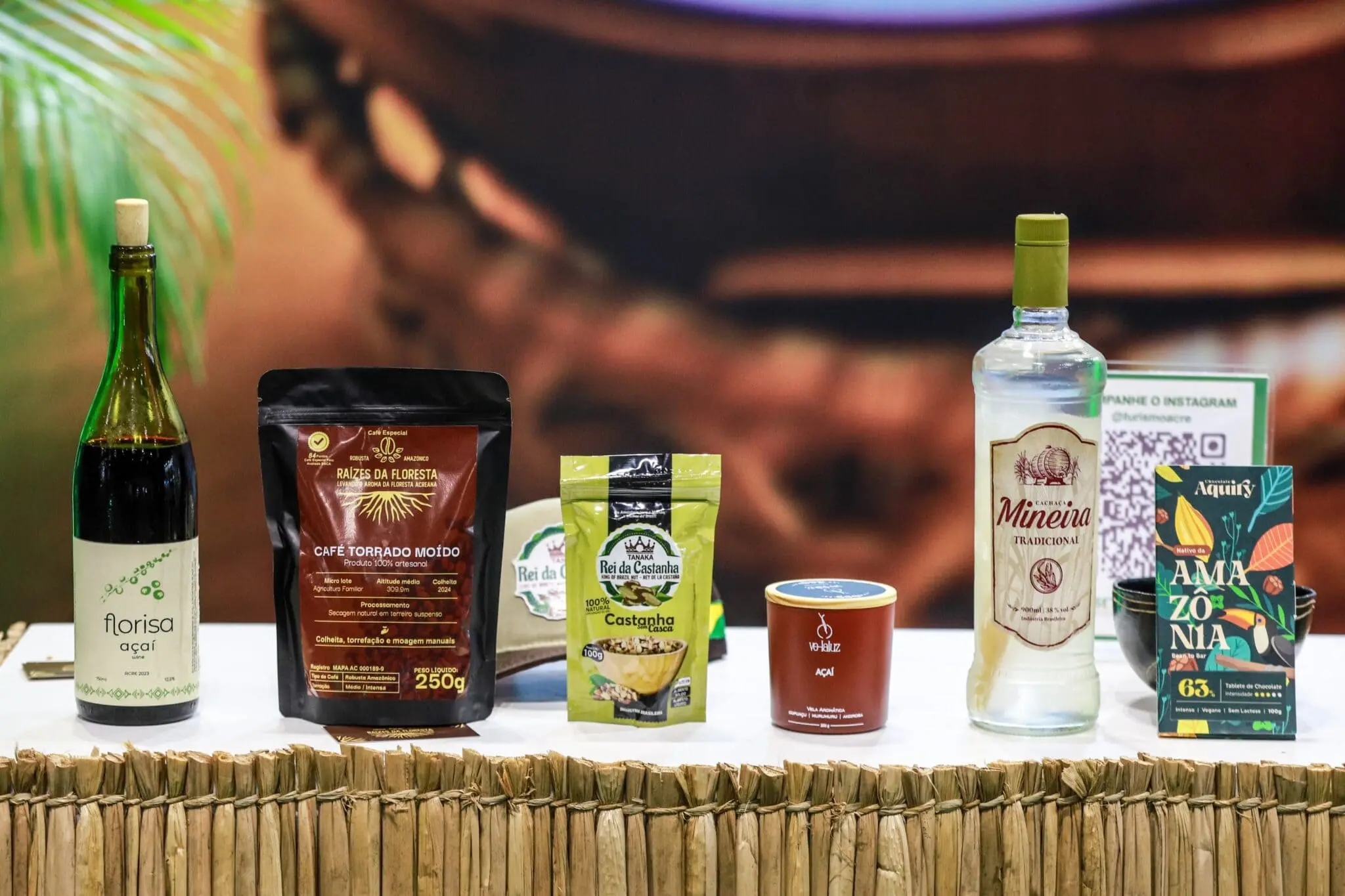 No estande do Acre são encontrados produtos como o Vinho de açaí Florisa @florisavinhos, Café Raízes da Floresta @raizes.dafloresta, Rei da Castanha @reidacastanha, Cachaça Mineira e Aquiry Chocolate Nativo da Amazônia. O estande também apresentou as Velas Aromáticas La Luz @ve-laluz, uma produção acreana.