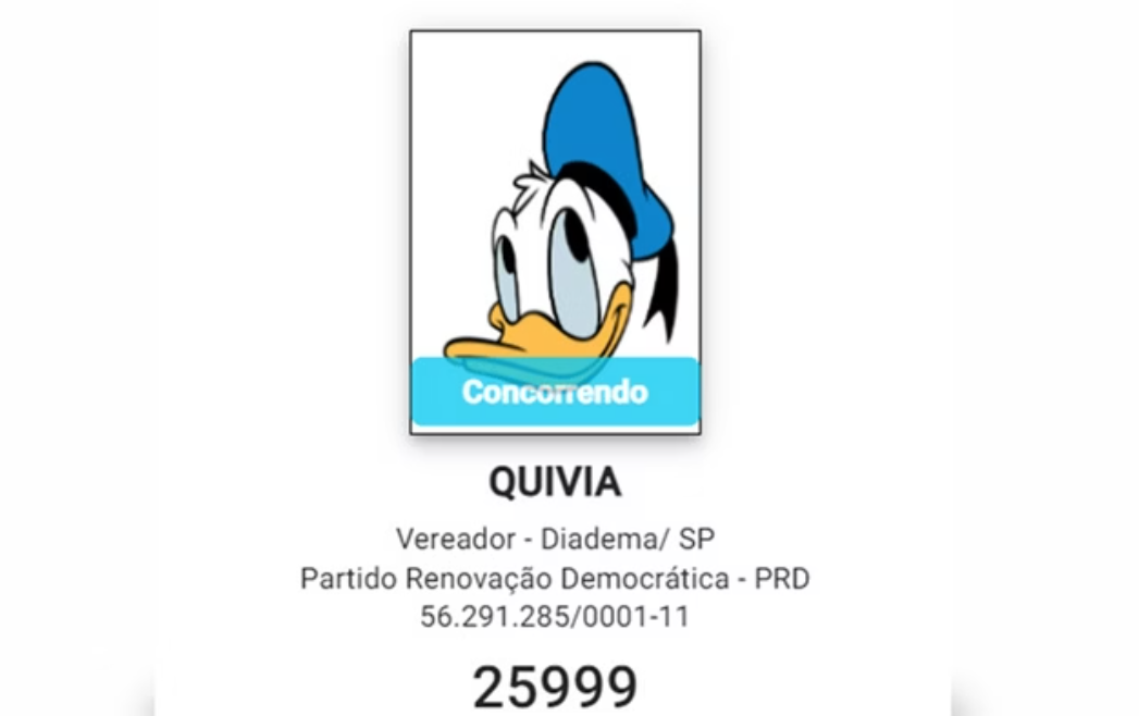 Nomes curiosos e jingles diferenciados costumam marcar as disputas municipais a cada nova eleição. As candidaturas já registradas na Justiça Eleitoral dão a tônica do pleito deste ano. Um caso curioso nos registros é da candidata que foi cadastrada com a foto do personagem Pato Donald.