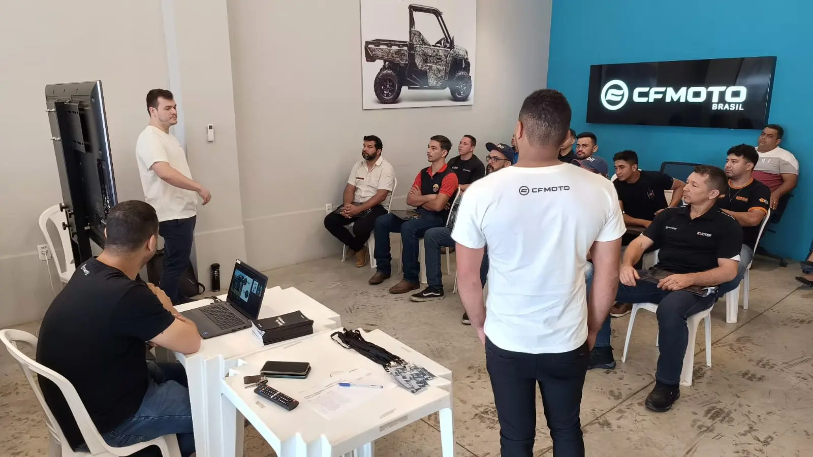 Hiago, que é instrutor de treinamento da CFMOTO Brasil, explicou que o curso envolve diversas esferas do mundo CFMOTO. “No primeiro dia a gente se foca muito em transferir a importância da marca hoje no nível mundial e também nacional. A gente fala muito sobre o nosso line up de produtos que trabalhamos aqui e também a história da CFMOTO no Brasil. No segundo dia a gente parte para mão na massa, que é o dia de manutenção onde a gente engloba as principais dúvidas que o mecânico tem hoje em dia”, explicou. No terceiro dia, o curso abordou a parte elétrica, desde um nível mais básico.
