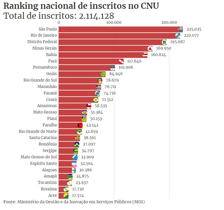 Apelidado de Enem dos Concursos, o Concurso Público Nacional Unificado (CNU) vai se aproximando, e 2,1 milhões de candidatos (veja distribuição abaixo) sonham em conquistar uma das 6.640 vagas e garantir um cargo na administração pública federal.