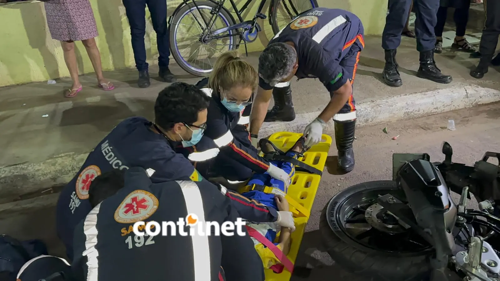 quipe do Serviço de Atendimento Móvel de Urgência (Samu) presta atendimento à criança no local do atropelamento/Foto: ContilNet