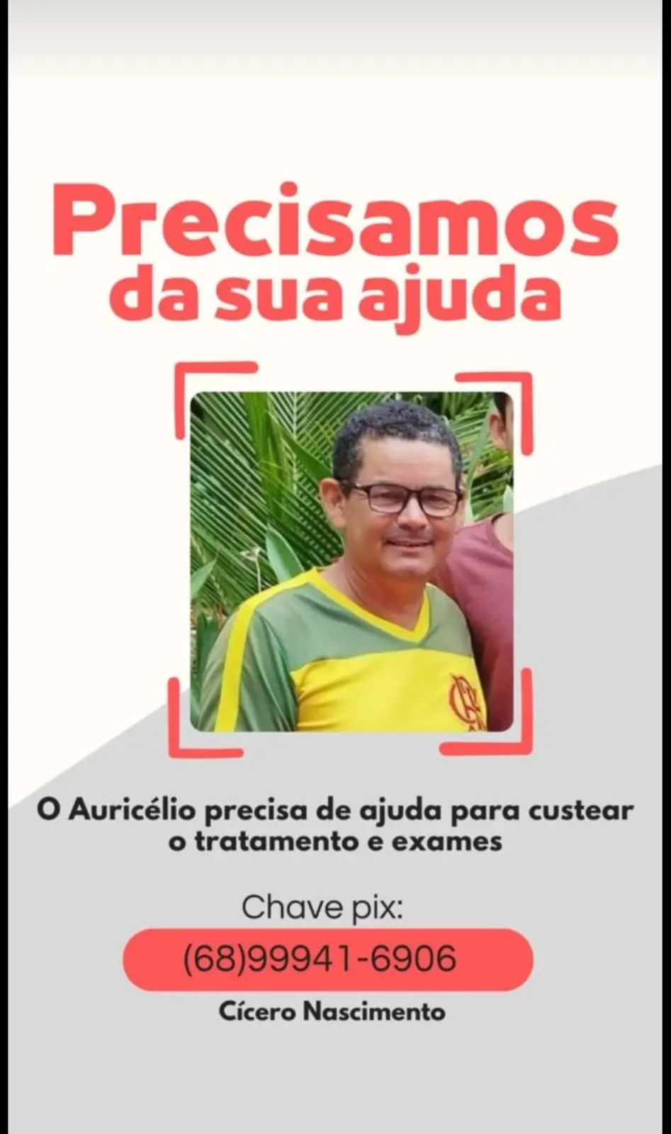 A família de Auricélio está pedindo o apoio da comunidade para ajudar a custear os tratamentos necessários. Para contribuir, você pode fazer uma doação através da chave Pix: