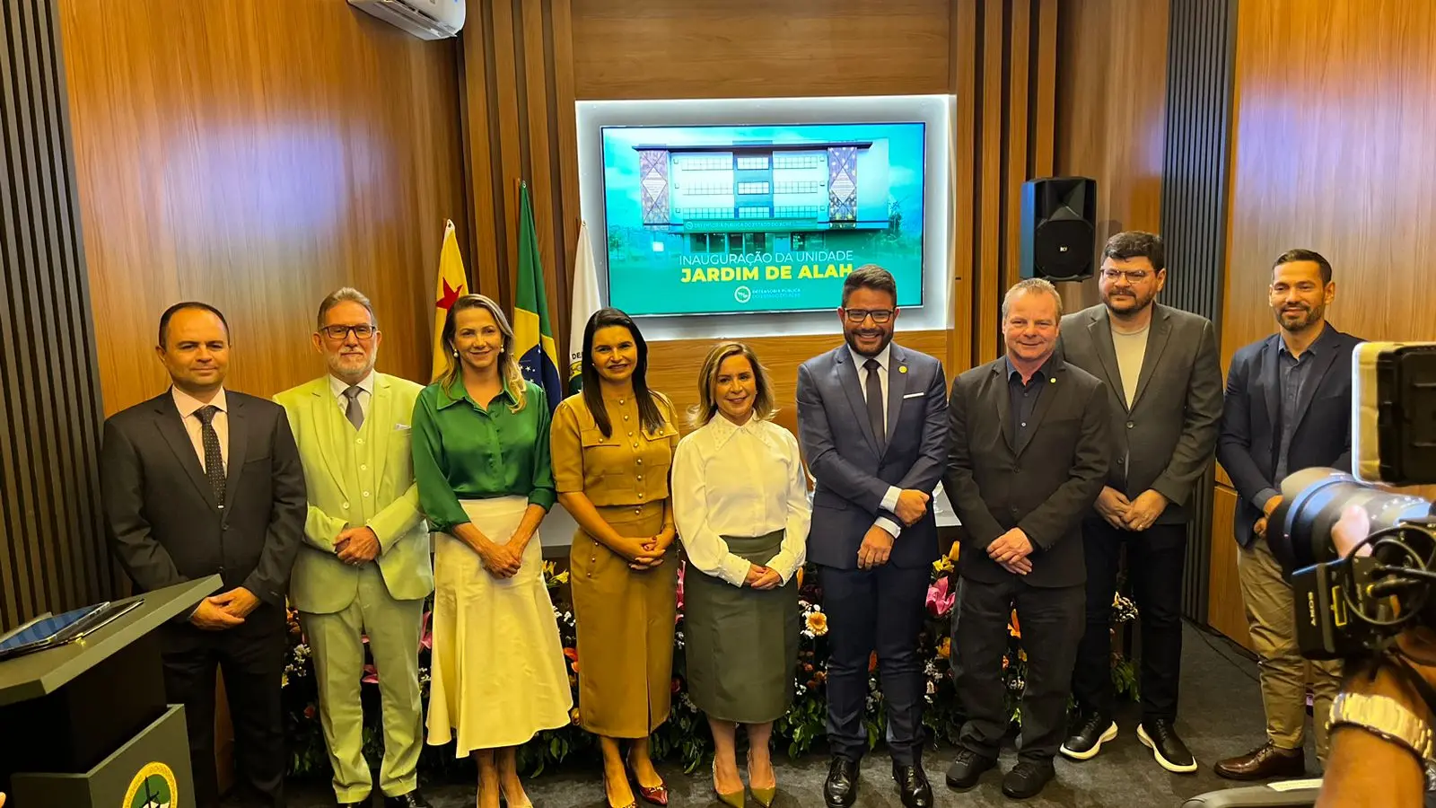 Momento da cerimônia de inauguração da unidade Jardim de Alah da DPE-AC, com a presença do governador Gladson Cameli e membros da Defensoria Pública/Foto: ContilNet