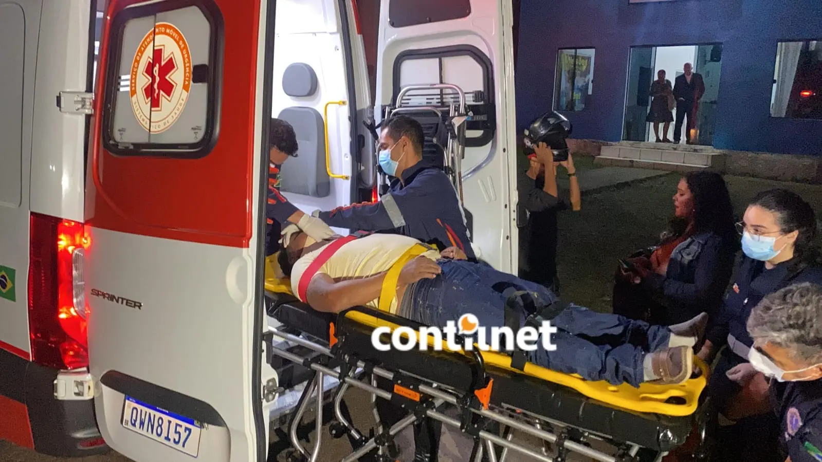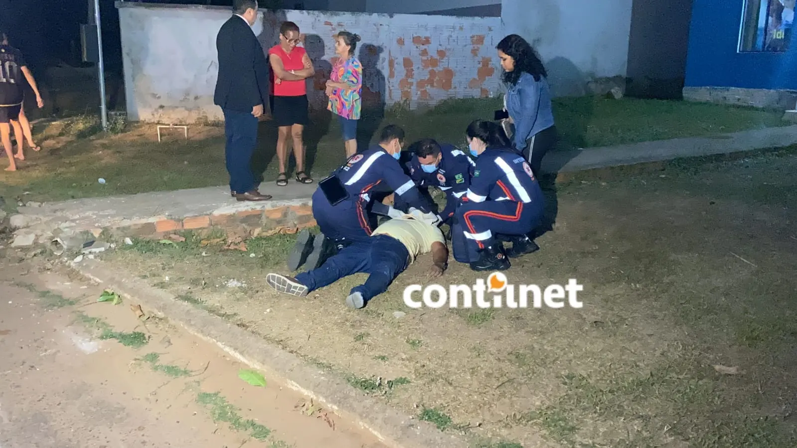 O motociclista Daniel Lopes Dias, 41 anos, ficou ferido após perder o controle da própria motocicleta e cair na noite deste domingo (25), na Rua Santa Maria, no loteamento Raimundo Maia, na região do Calafate, em Rio Branco.