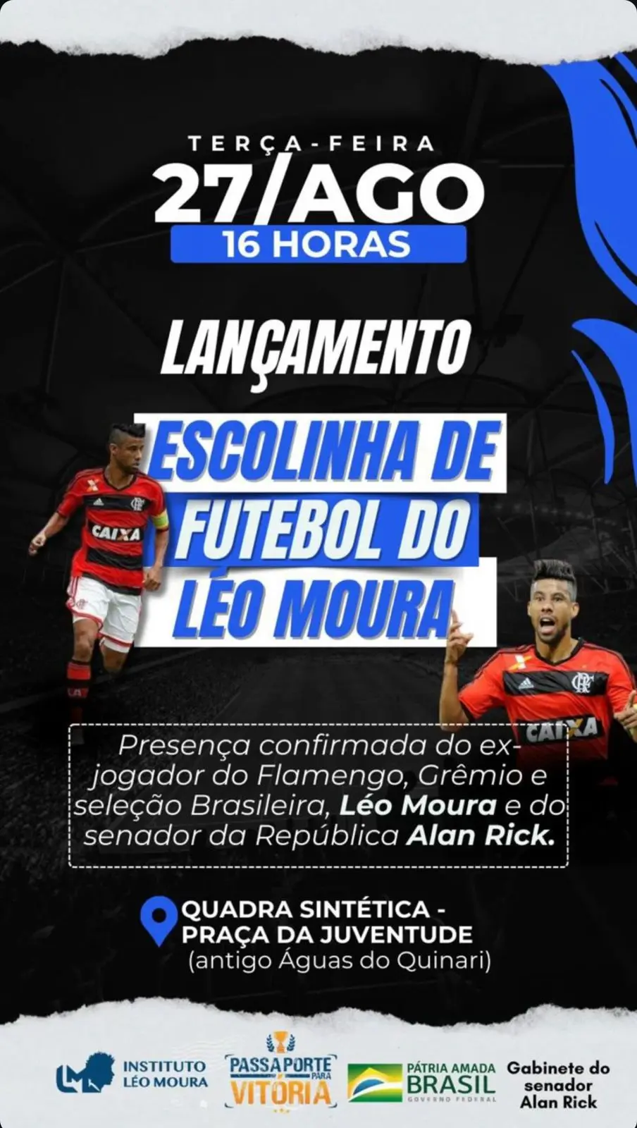 O ex-jogador de futebol Léo Moura, que jogou por anos pelo Flamengo, cumpre agenda no município de Senador Guiomard, no interior do Acre, nesta terça-feira (27). Léo participa do lançamento do Projeto Passaporte para a Vitória, desenvolvido pelas Escolinhas de Futebol do Instituto Léo Moura.