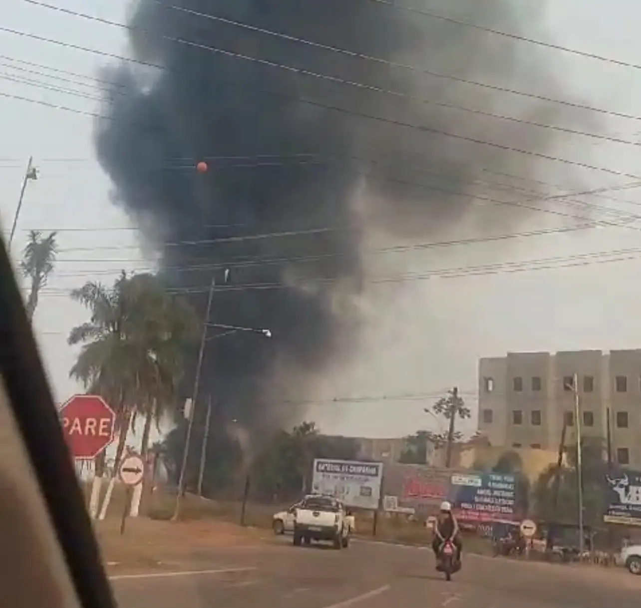 Imagens enviadas ao ContilNet, mostram uma enorme chama preta no céu, resultado das chamas do incêndio no terreno.