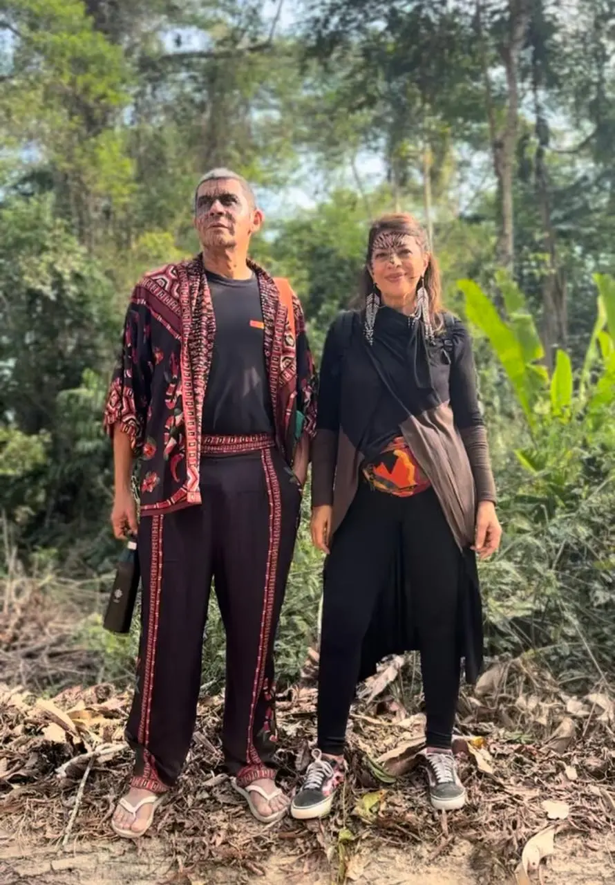 As artistas Dominique Nawama e Hukena Yawanawa, que resgatam cantos Yawanawa e encantam em suas viagens pelo país e exterior
