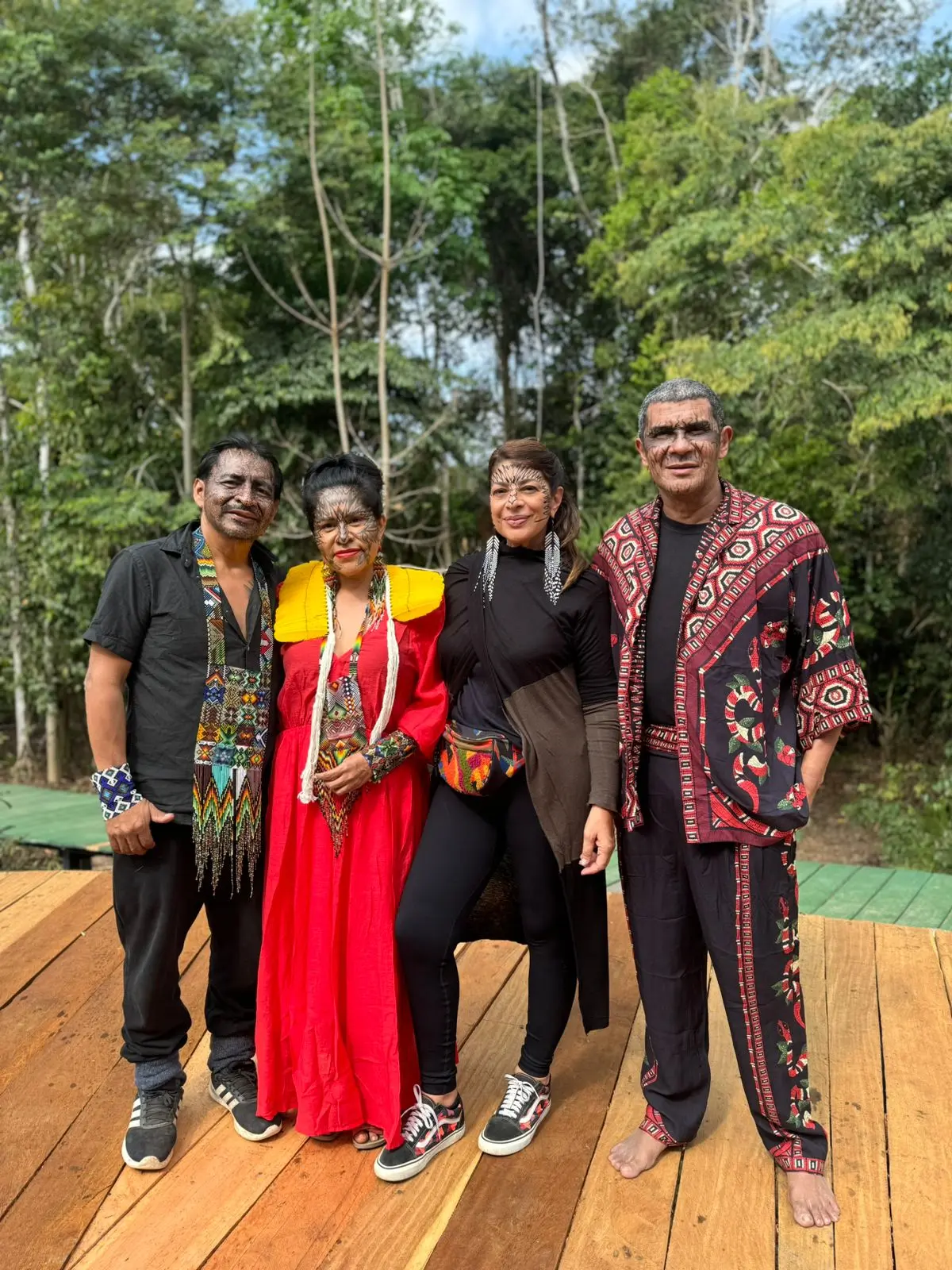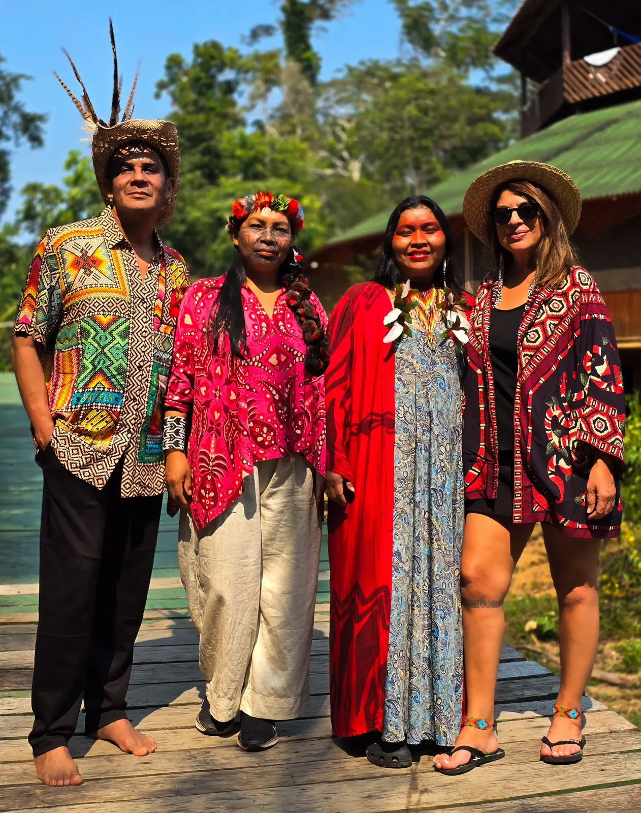 Eu e Moisés com duas mulheres de força do povo Yawanawa: a coordenadora do festival, Júlia Yawanawa, e a diretora da Secretaria dos Povos Indígenas, Nedina Yawanawa