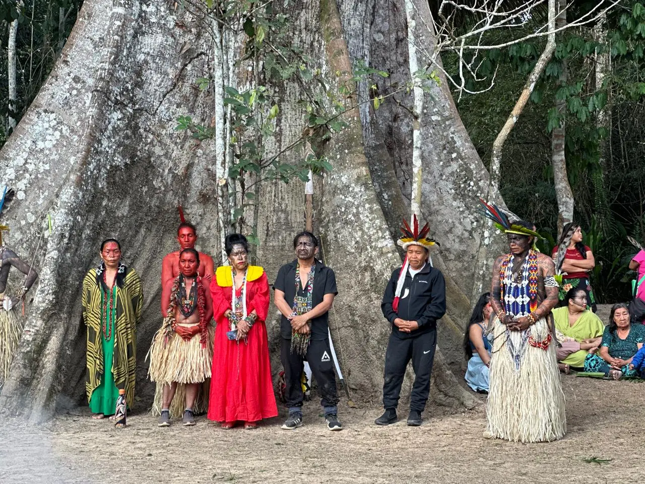 Algumas das autoridades presentes na cerimônia de abertura realizada na sapopema da Samaúma