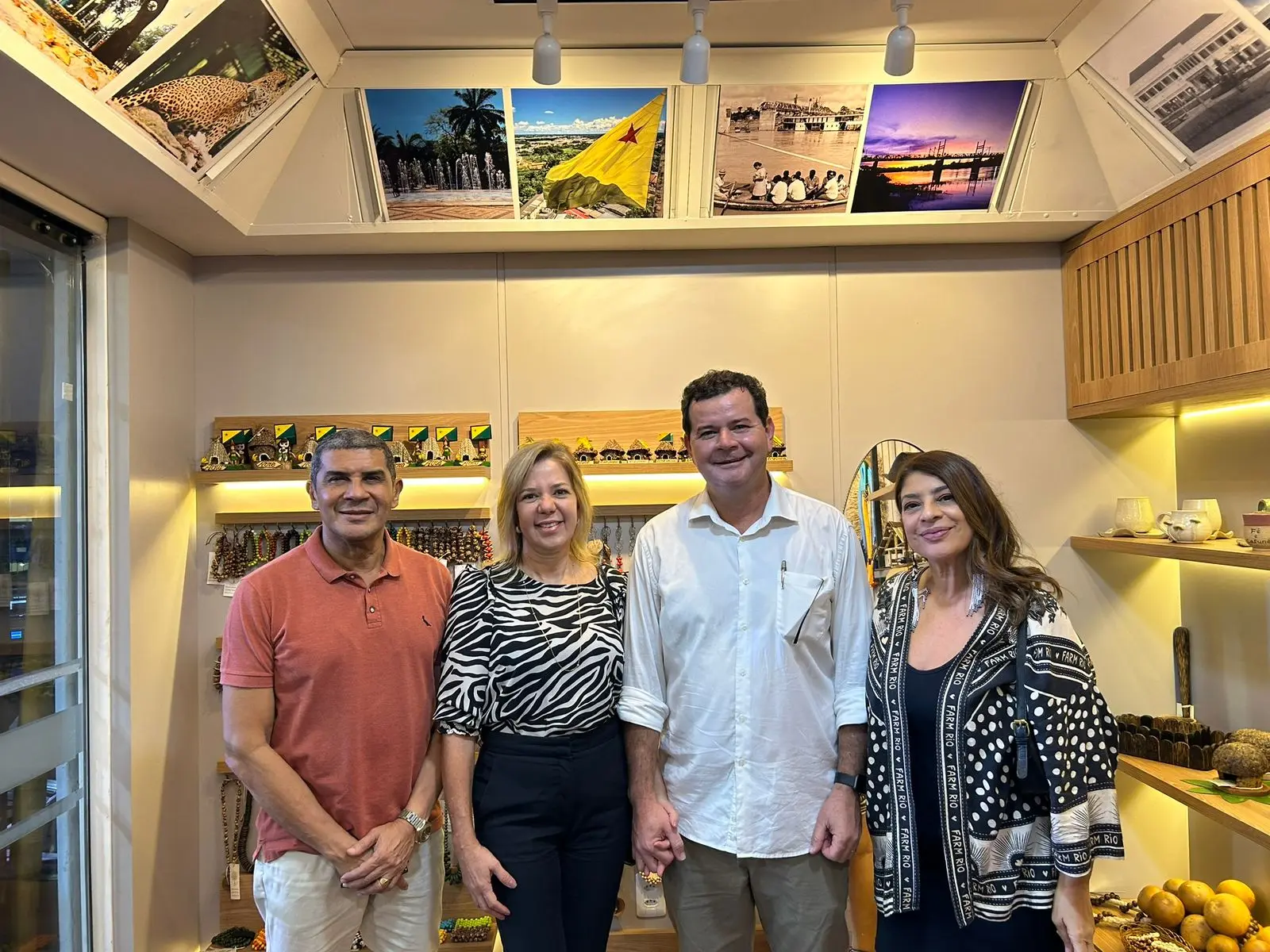 Na inauguração do Centro de Atendimento ao Turista, ocorrida no dia 5, com o secretário municipal de Turismo, Ezequiel Bino, sua esposa Kelly Gouveia, e o colunista Moisés Alencastro.