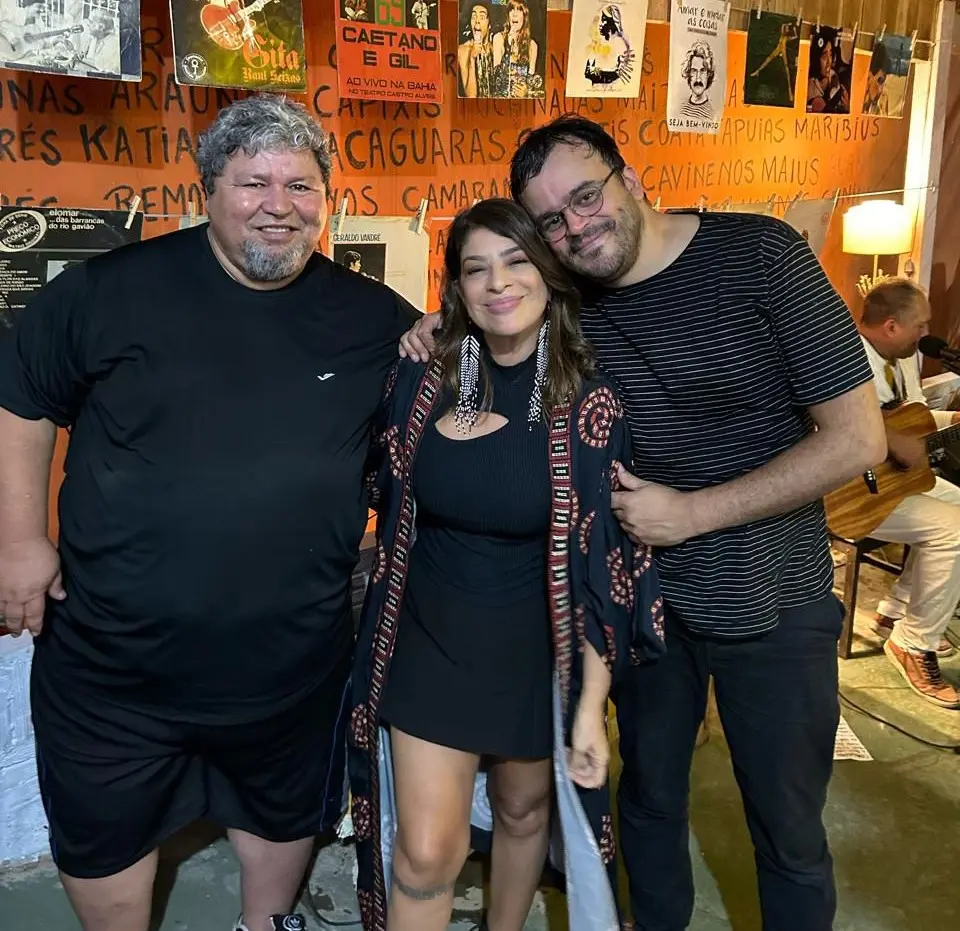 A passagem do músico João Vasconcelos por Rio Branco foi totalmente musical. Além do show de 21º aniversário dos Los Porongas, ele também realizou o Especial Beatles, no dia 12, e o Especial Belchior, no dia 18, ambos na Casa do Poeta. E rolou ainda mais uma edição do Especial Beatles, no dia 19, na Confraria, com as participações dos músicos Pedro Arco e Jorge Anzol. Na foto, eu com ele e o querido poeta César Augusto, o Cesinha.