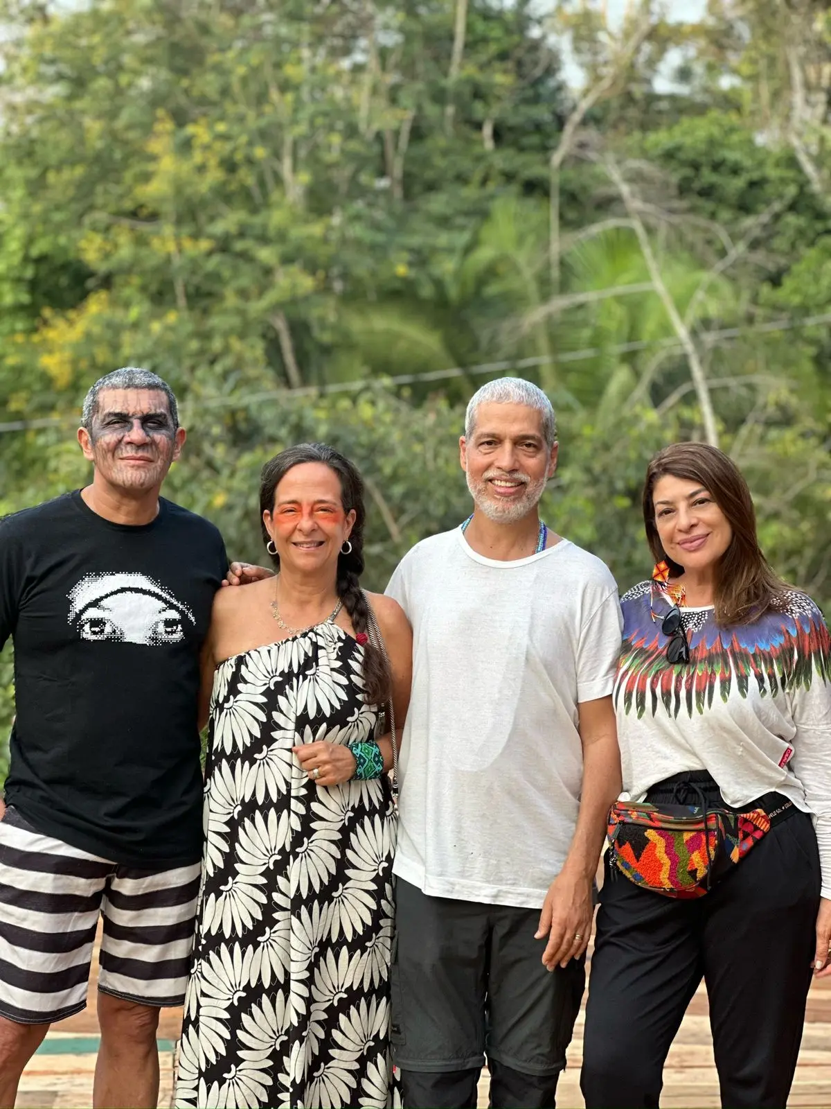 Com Moisés Alencastro, Bia Saldanha e o cineasta Estêvão Ciavatta, marido da artista Regina Casé
