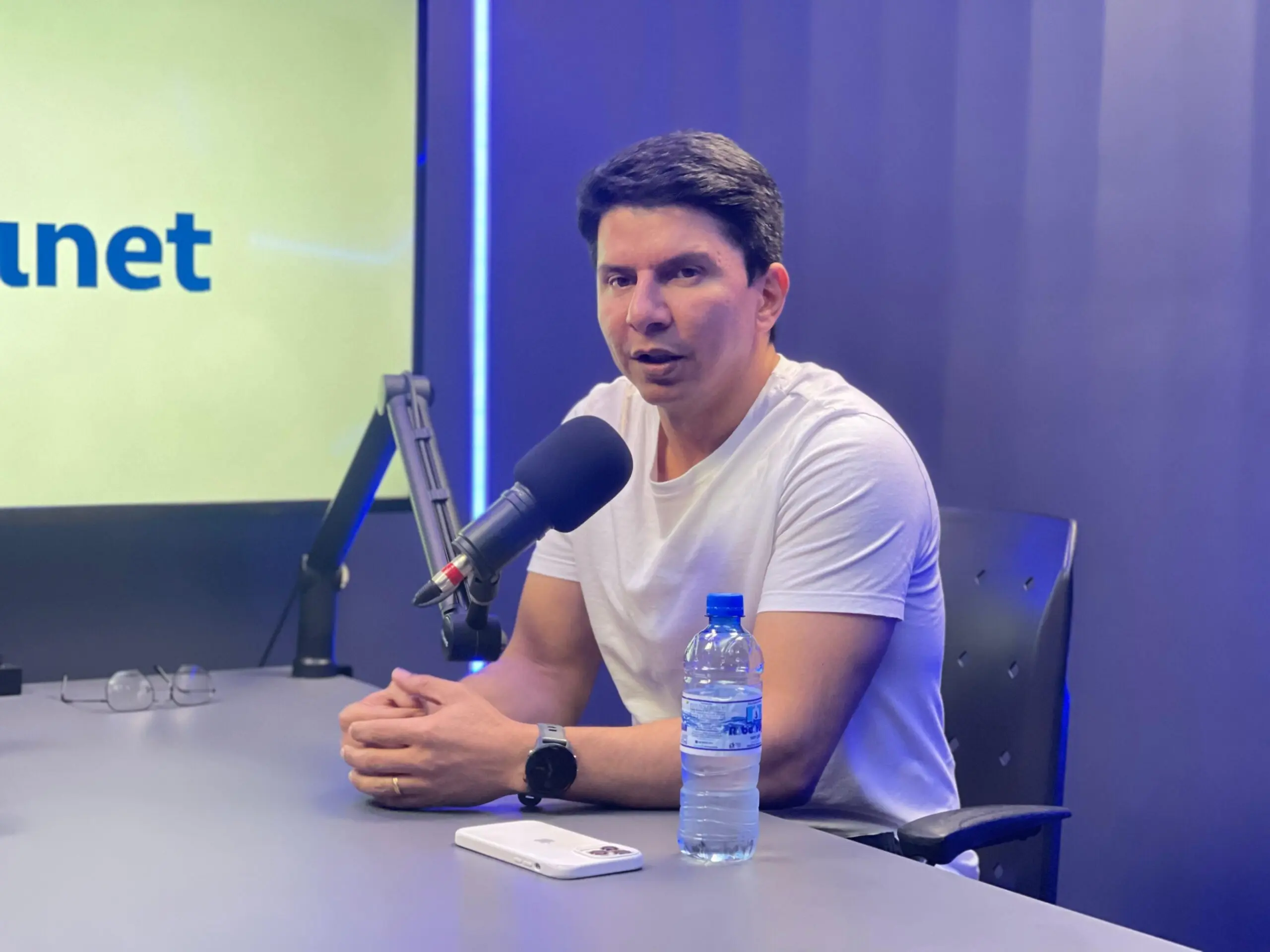 Jenilson Leite, candidato a prefeito de Rio Branco pelo PSB, durante entrevista ao podcast Em Cena do ContilNet/Foto: ContilNet
