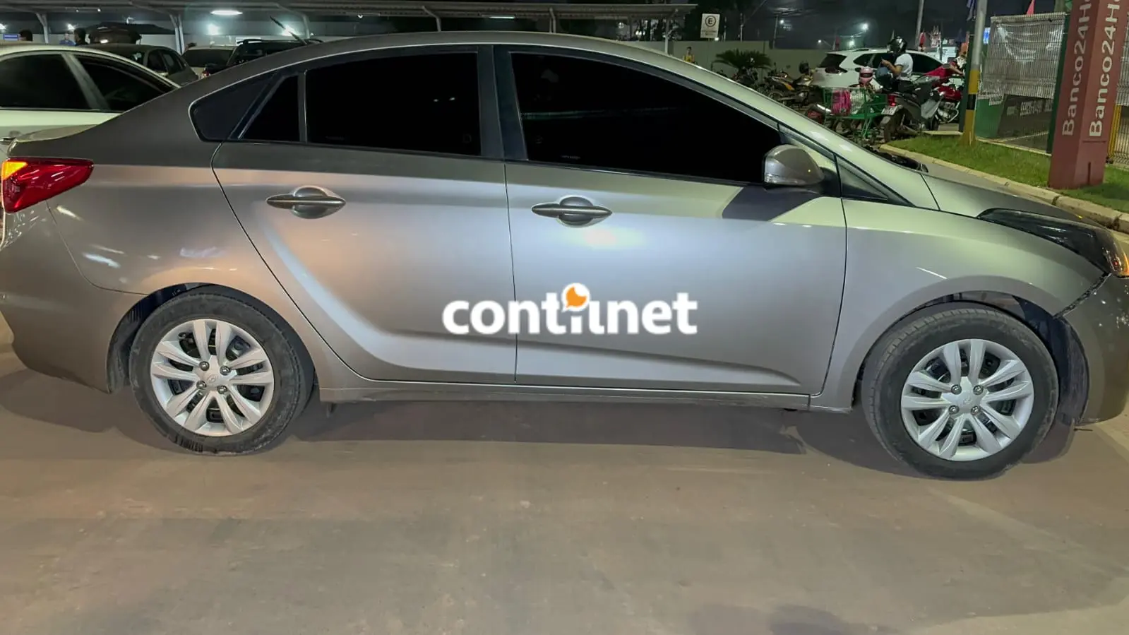 Carro HB20S, que se envolveu na colisão com a moto, mostrando a posição do veículo após o impacto no estacionamento do atacadista/Foto: ContilNet