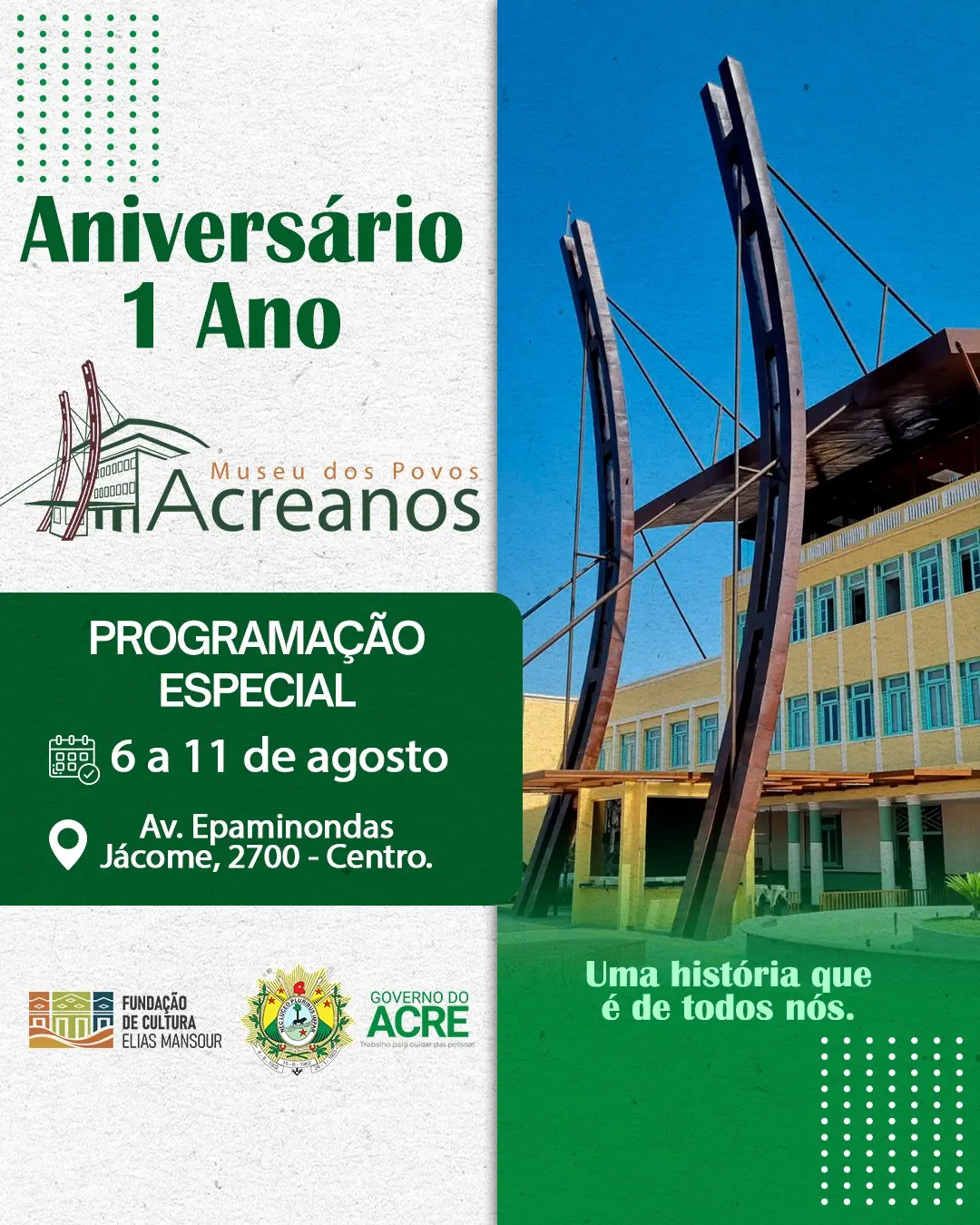 O Museu dos Povos Acreanos foi inaugurado em 06 de agosto de 2023.