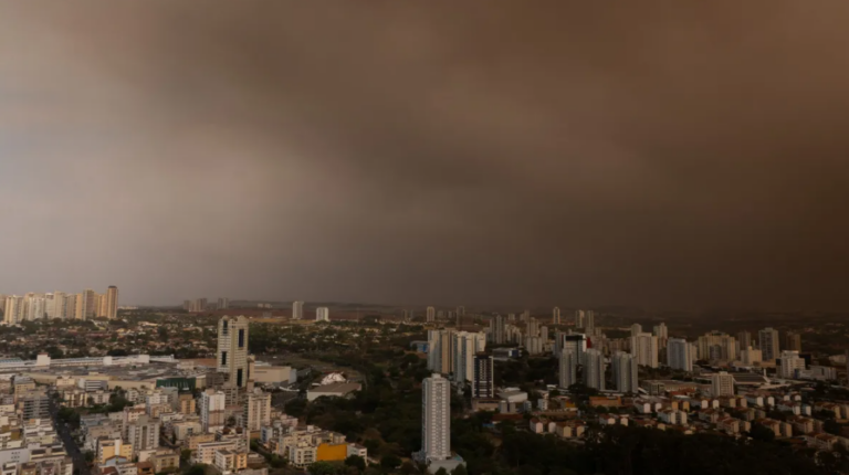 A fumaça que atingiu o interior ganhou proporçÔes gigantescas e chegou à capital. Imagens cedidas à CNN pelo Clima Ao Vivo mostram o momento em que a fumaça cobre o céu e deixa o sol avermelhado.