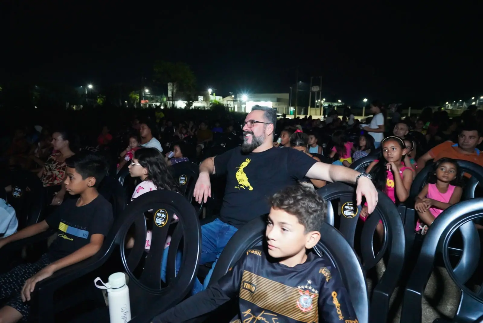 “Eu sempre falo que se você não pode ir ao cinema, o cinema vai até você. Por isso que eu quero parabenizar o nosso querido senador Alain Rick pela visão, pela sensibilidade, por se preocupar, principalmente, com as pessoas que mais precisam. Cinema é cultura, cinema é arte. E essa magia do cinema, o senador teve essa sensibilidade em parceria com o governo do estado, por meio da Fundação Elias Mansour, pra gente trazer o cinema para os bairros. Além do cinema, está tendo pipoca e atividades recreativas com as crianças, que são a nossa razão maior de trabalhar, de servir.” – pontuou o presidente da FEM, Minoru Kimpara.