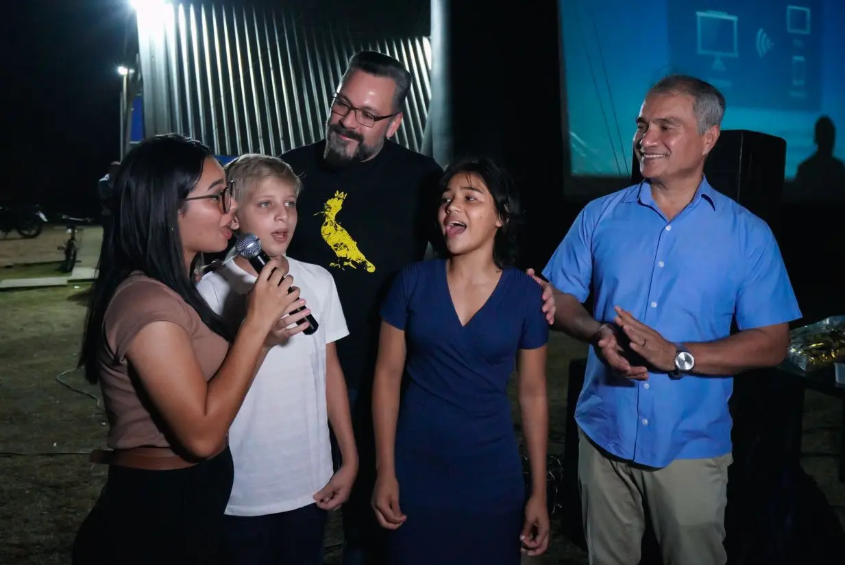 “Olha quantas crianças aí, felizes de estar aqui, prestigiando um momento desse. Gostaria de agradecer, em primeiro lugar, a Deus, e em segundo lugar, ao senador Alan Rick por estar realizando esses sonhos da nossa comunidade. É com a escolinha de futebol do Léo Moura, agora com o Cinema. Só o senador mesmo para lembrar da gente, assim.” – agradeceu a presidente da Associação Comunitária Amigos da Cidade do Povo, Léia Silva.