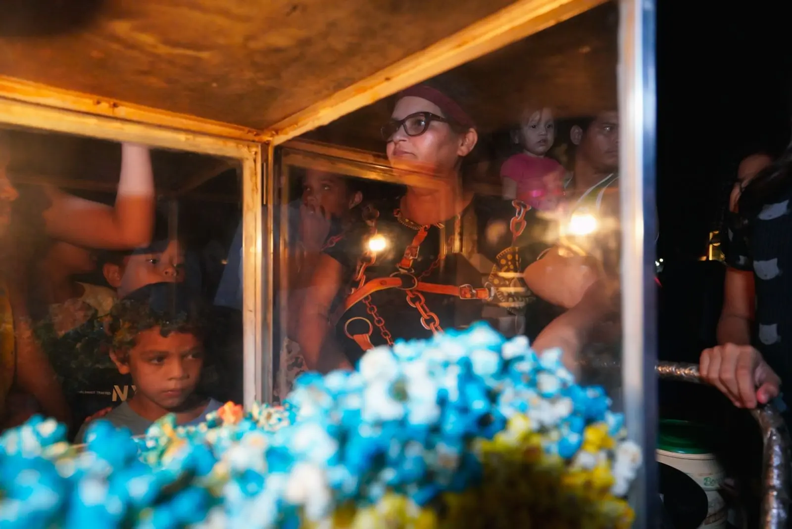 Montada na própria bicicleta dona Alice Gomes assistiu ao filme Elementos, exibido em um telão de 11 metros de altura na área ao lado do Centro Comunitário da Cidade do Povo, em Rio Branco. Ela garantiu uma cadeira nas primeiras fileiras para o filho Enzo que apreciou mais ainda o filme.