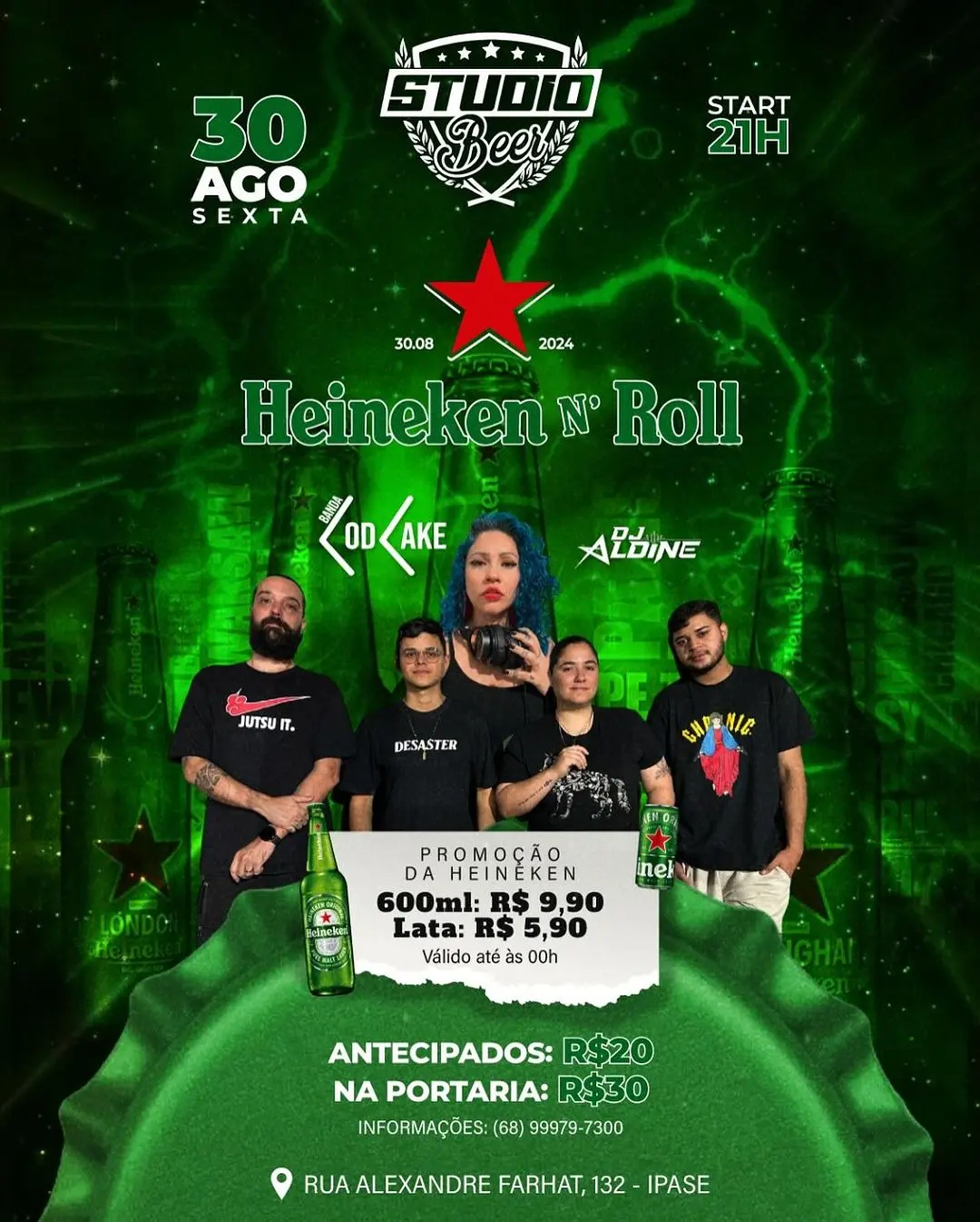 Prepare-se para uma noite épica de rock e diversão no Studio Beer! No dia 30 de agosto, a partir das 21h, venha curtir o som da incrível banda CodCake e as batidas da DJ Aldine. Garanta seu ingresso antecipado por R$ 20,00 ou na portaria por R$ 30,00.