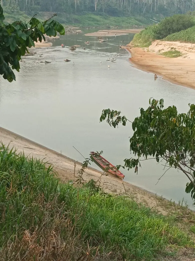Nesta semana, um morador da comunidade Mariomba foi filmado dentro do rio empurrando sua canoa em um trecho que secou bastante.
