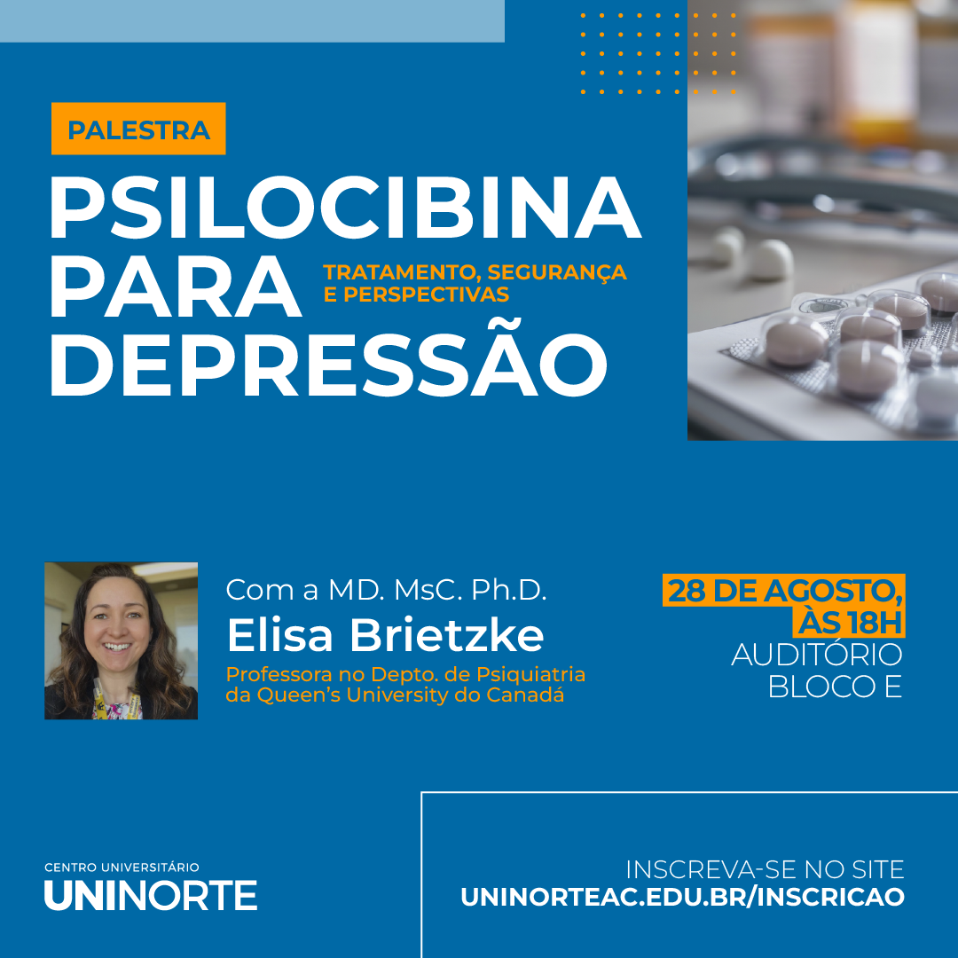 No dia 28 de agosto, a partir das 18h, o Centro Universitário Uninorte irá receber a MD. MsC. Ph.D. Elisa Brietzke, com a palestra intitulada “Psilocibina para Depressão – Tratamento, Segurança e Perspectivas”, que acontecerá no auditório do bloco E da instituição.