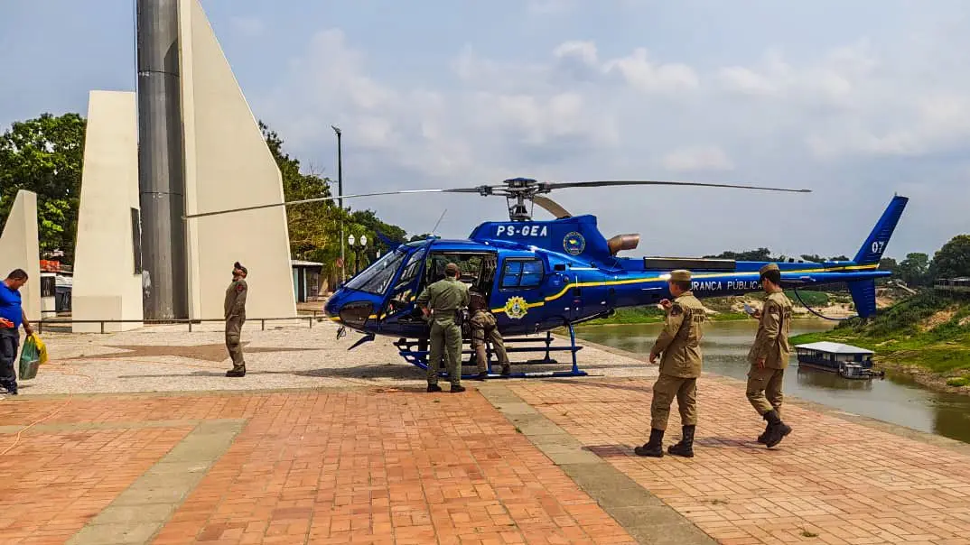 Um helicóptero do Governo do Estado pousou na Gameleira na tarde desta terça-feira (6) na tentativa de reajustar a bandeira do Acre, presa nos raios do mastro.