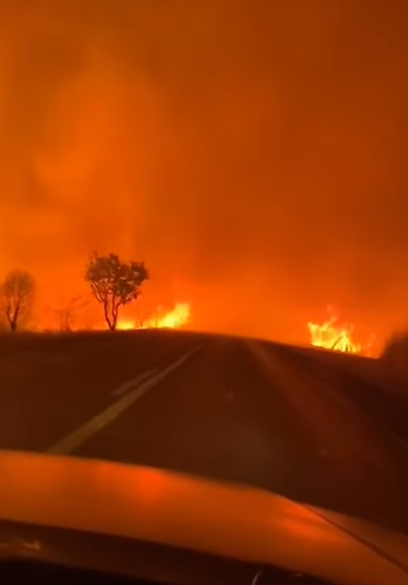 O incêndio, que se espalhou rapidamente pela região, obstruiu a principal via de acesso, afetando a mobilidade e o transporte.