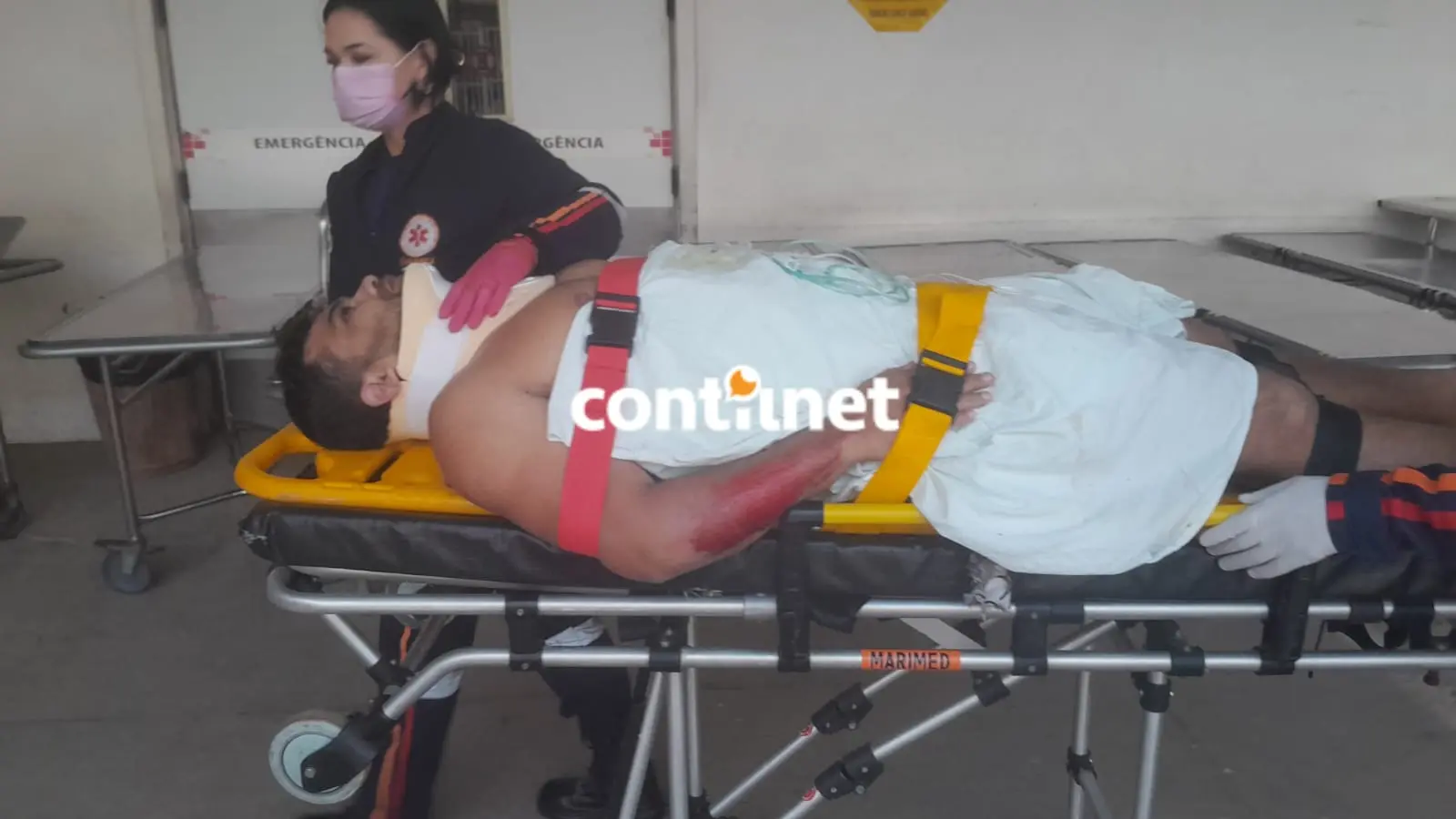Marcos Paulo Carvalho sendo socorrido após o acidente; o vigilante foi atropelado e teve o abdômen esmagado pelos pneus do ônibus/Foto: ContilNet