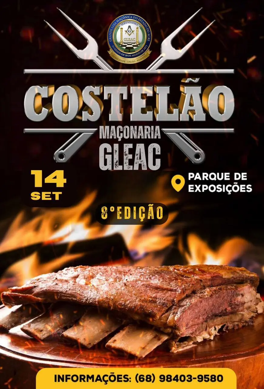 A Grande Loja Marconica do Acre prepara o oitavo “Costelão” no próximo dia 14 de setembro no parque de Exposições Wildy Viana.