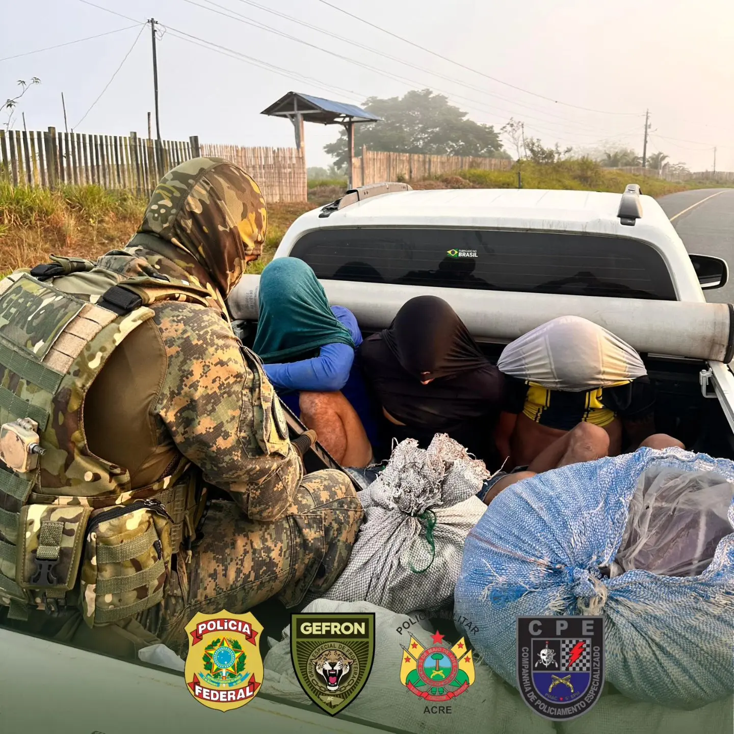 Na operação, três pessoas foram presas, e as drogas foram apreendidas, totalizando aproximadamente 101 kg. O material apreendido foi encaminhado para a sede da Polícia Federal em Cruzeiro do Sul, onde serão realizados os procedimentos legais.