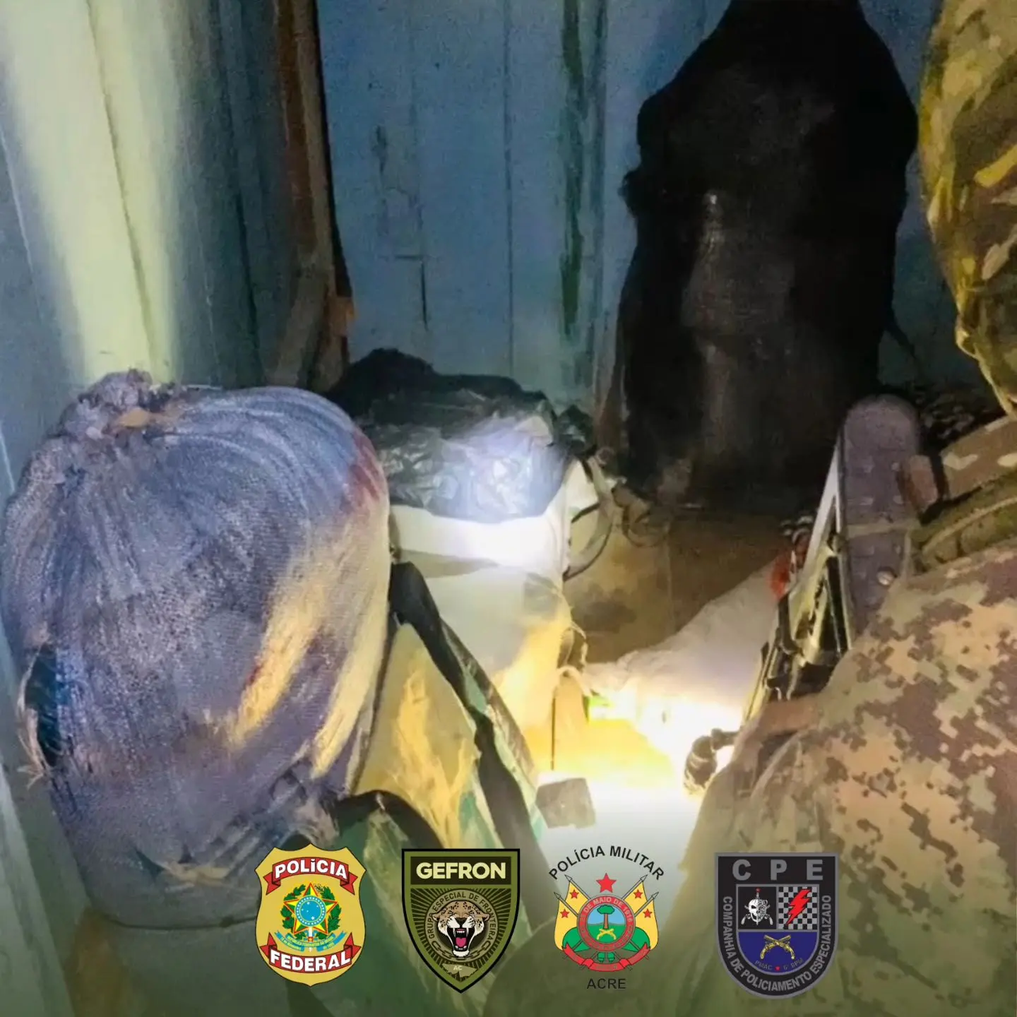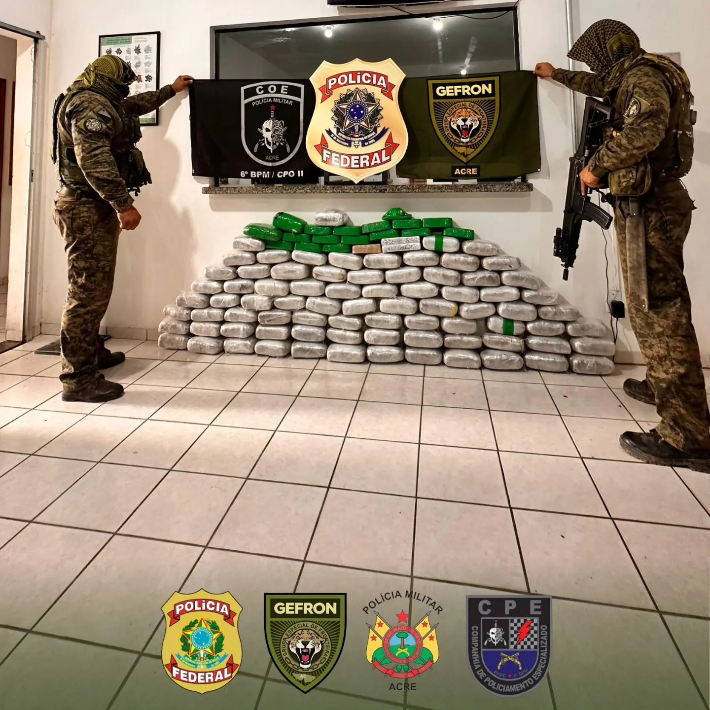 Ação integrada do GEFRON, Polícia Federal, Polícia Militar de Mâncio Lima e GOE/CPE resulta em apreensão de 101 kg de entorpecentes/Foto: Reprodução