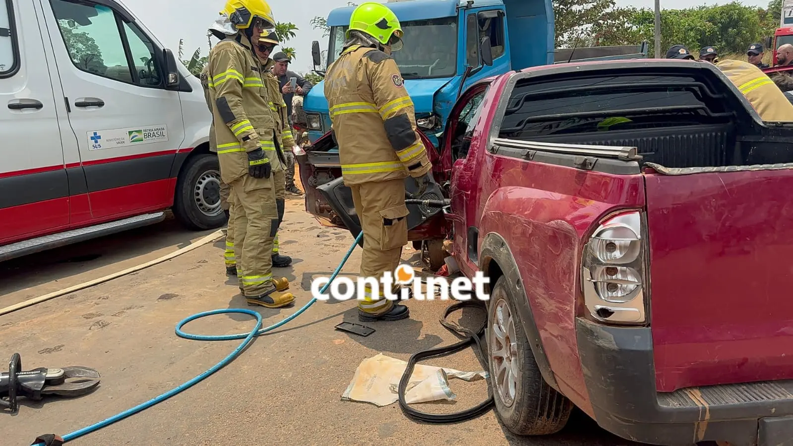 O motorista Eduardo Correia Fonseca, 49 anos, e um passageiro ainda não identificado ficaram em estado grave após colidirem de frente com uma caçamba no início da tarde desta terça-feira (24), nas proximidades da fábrica de Café Contri, no km 1 da rodovia AC-10, mais conhecida como Estrada de Porto Acre, em Rio Branco.