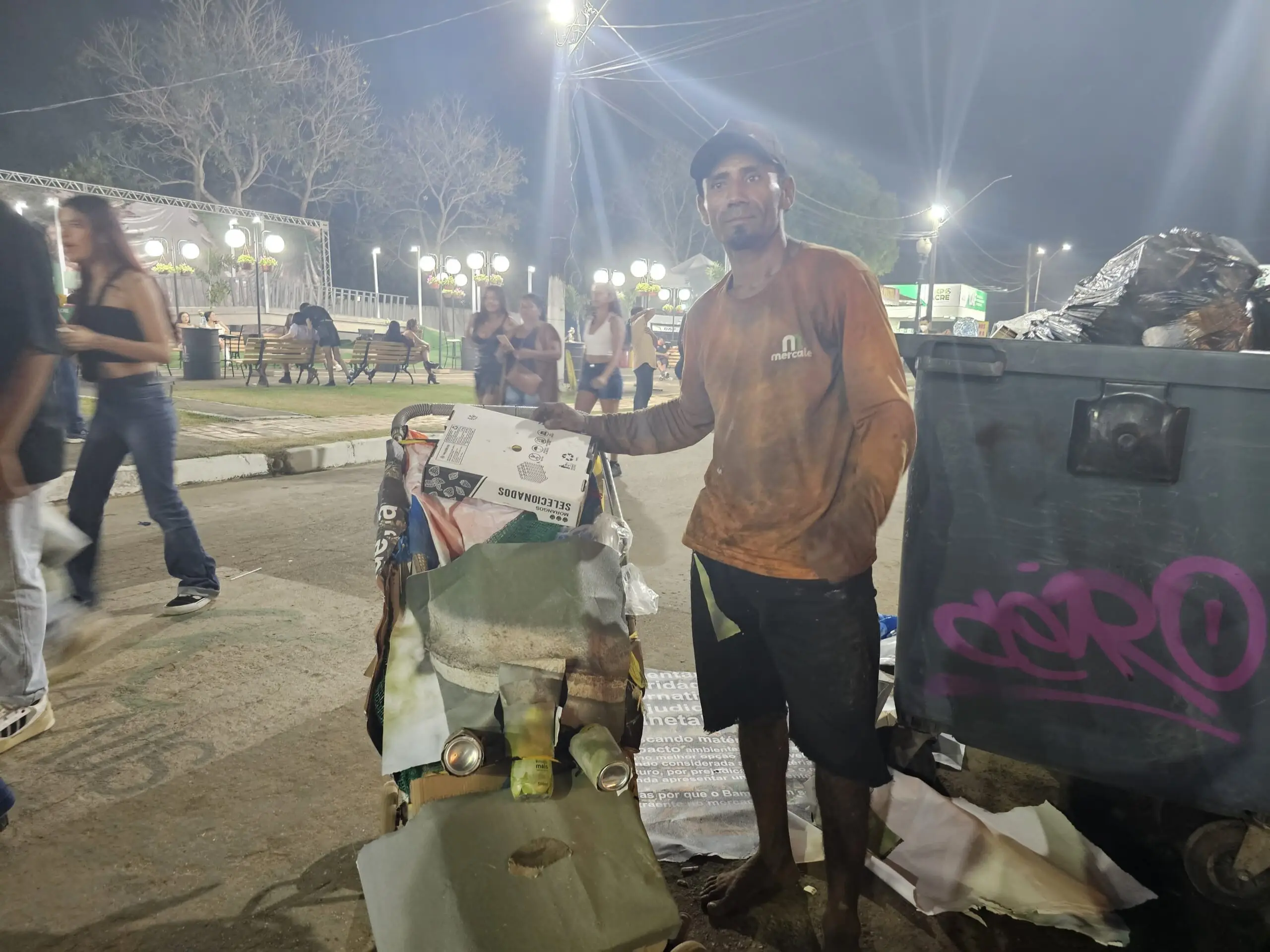 Carlos Lima Costa, de 38 anos, é um dos catadores de latinhas que marcam presença na Expoacre 2024. Sua trajetória no mundo da reciclagem começou há cerca de quatro anos, após enfrentar uma depressão e precisar de uma nova fonte de renda.