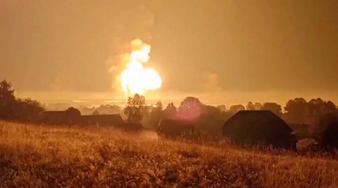 Um ataque ucraniano com drones em grande escala contra a Rússia provocou uma explosão do tamanho de um terremoto em um grande arsenal na região de Tver nesta quarta-feira (18), forçando a retirada das pessoas de uma cidade próxima, informaram blogueiros de guerra e alguns meios de comunicação.