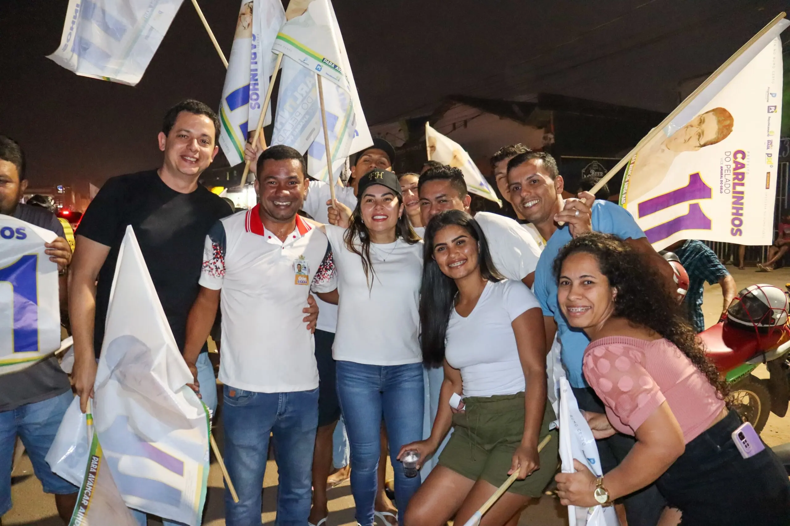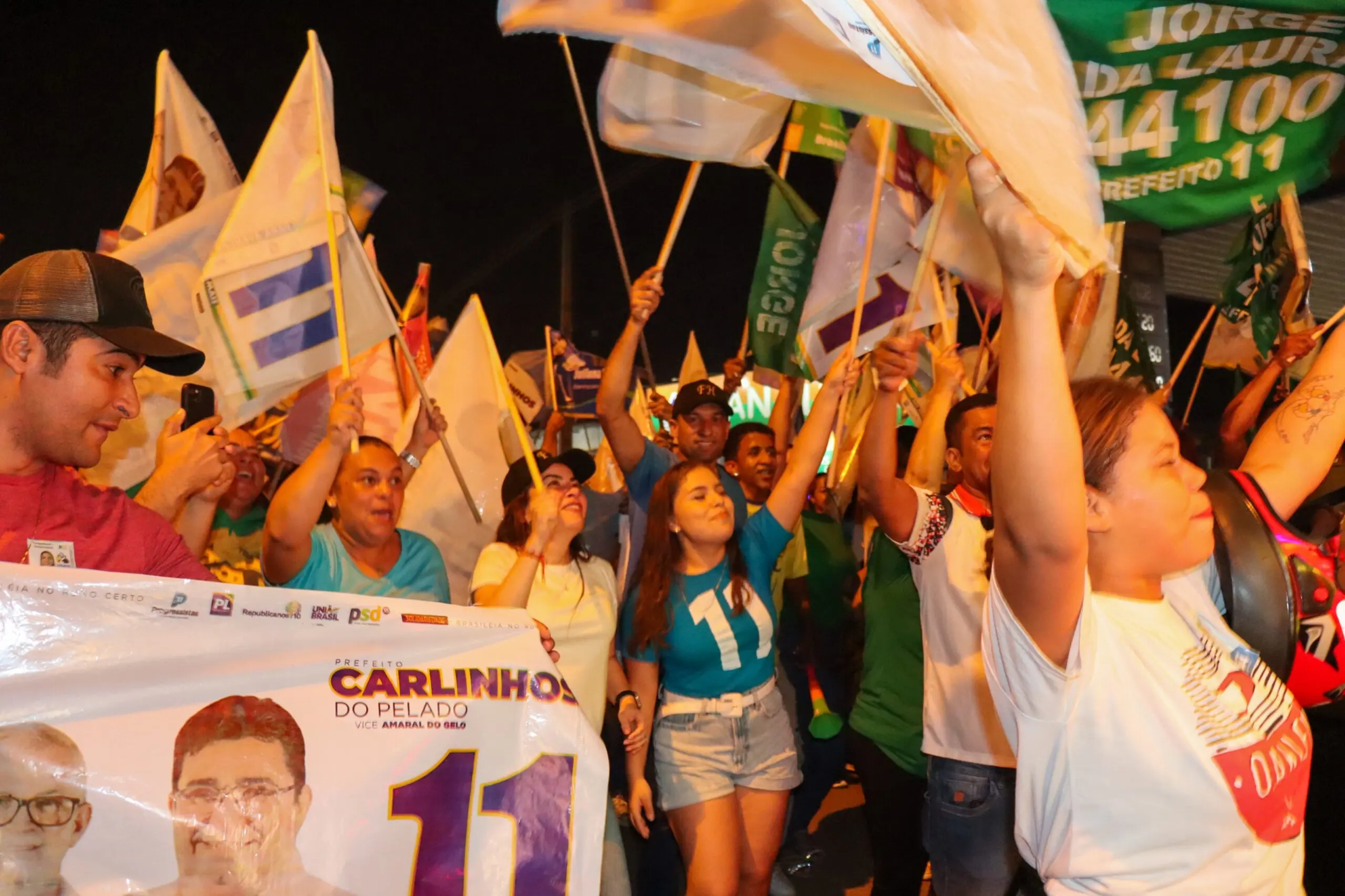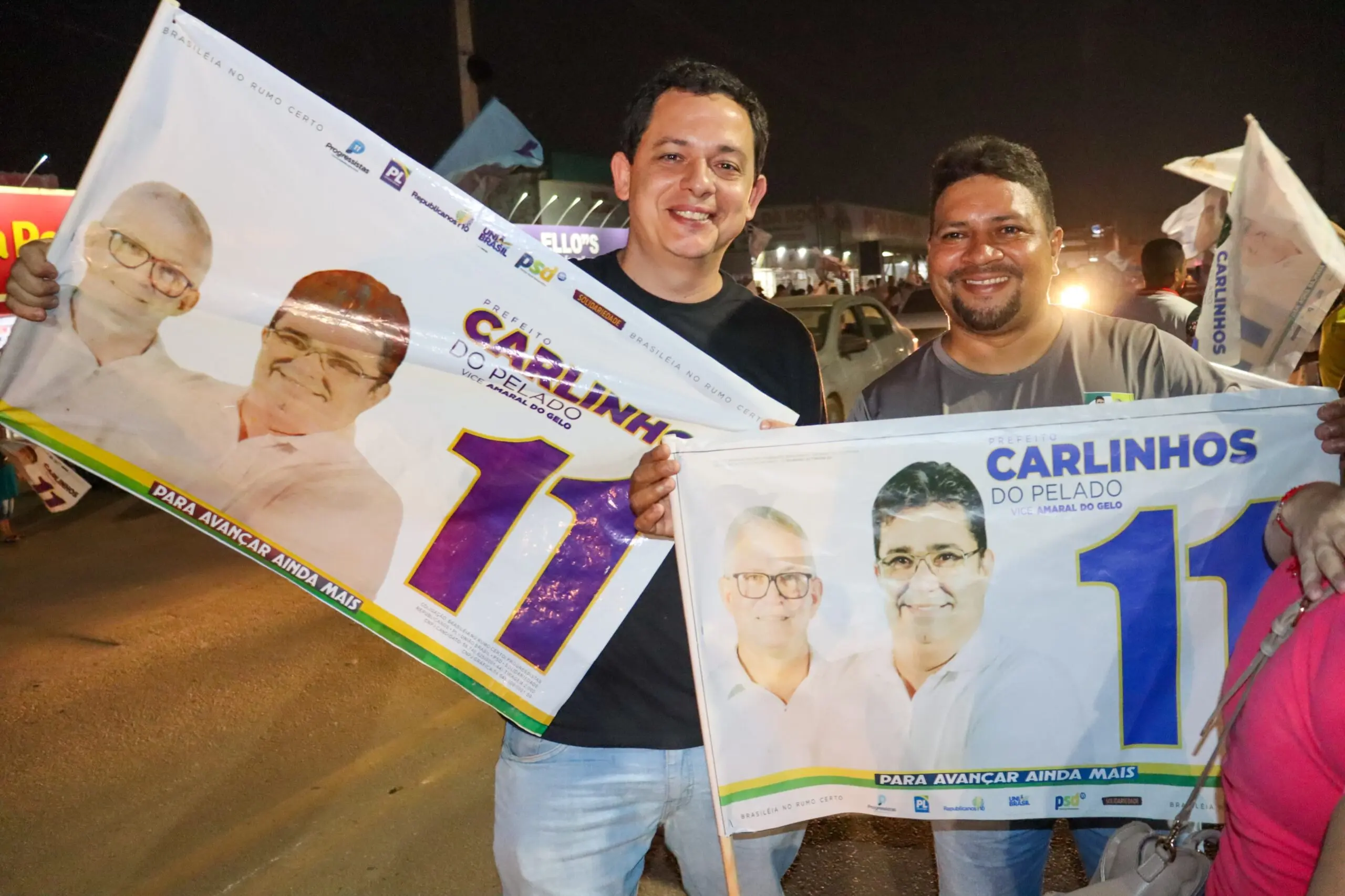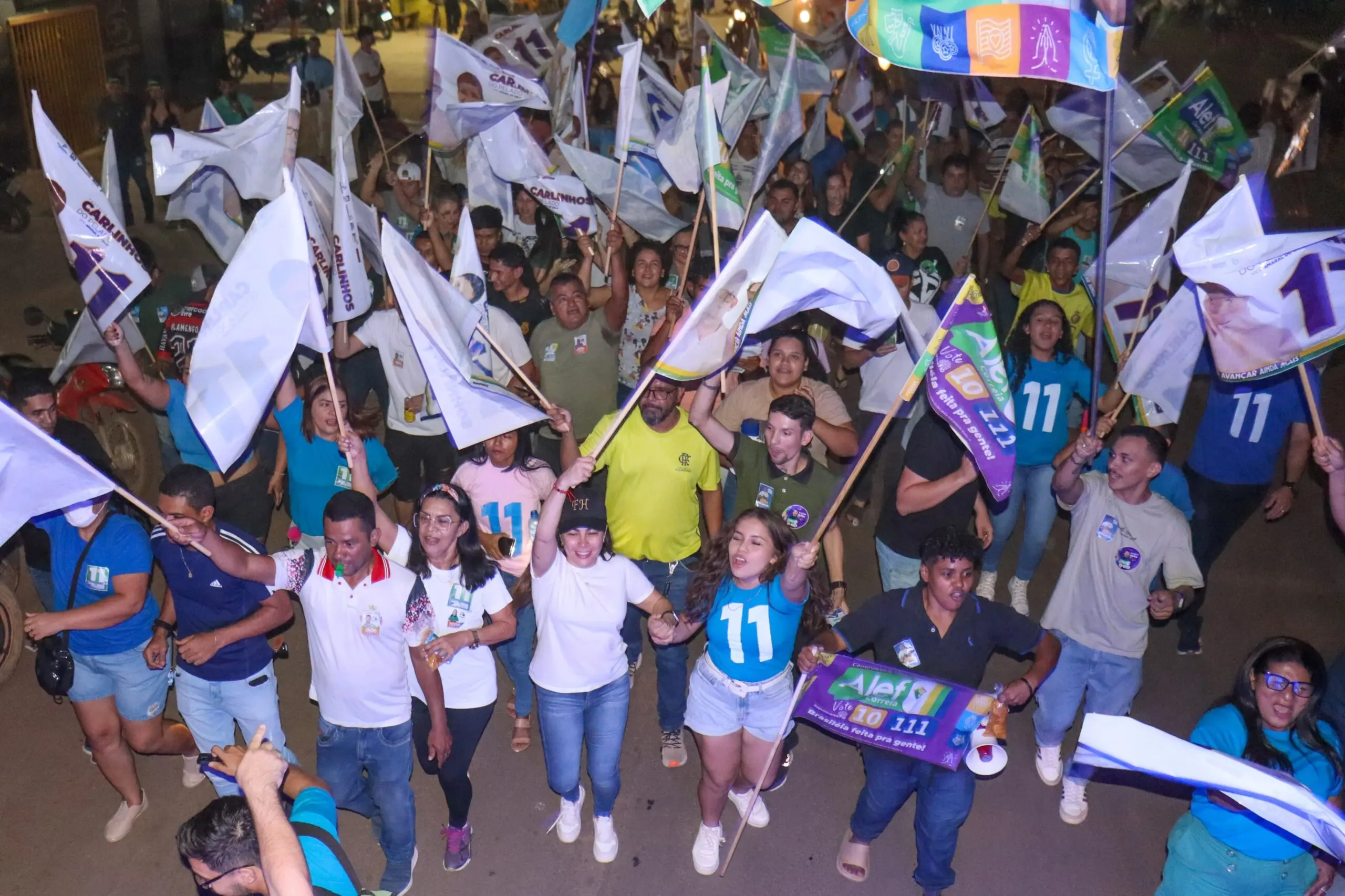 Mais de 1000 pessoas marcaram presença no Bandeiraço do 11, mostrando o apoio firme à candidatura de Carlinhos do Pelado e Amaral do Gelo/Foto: Ascom