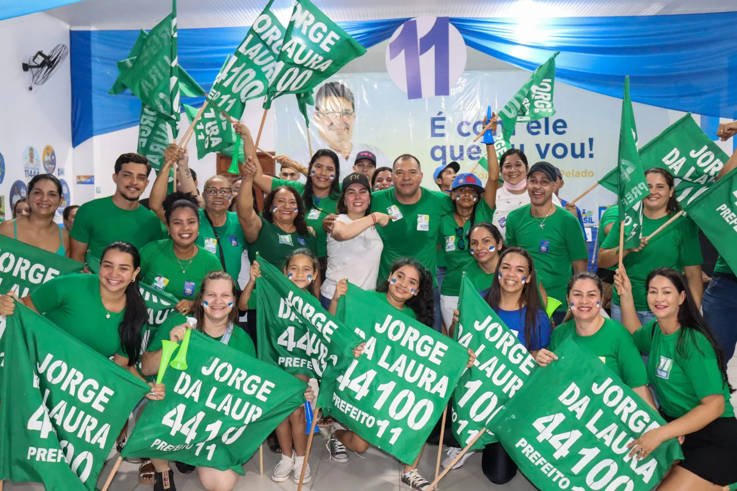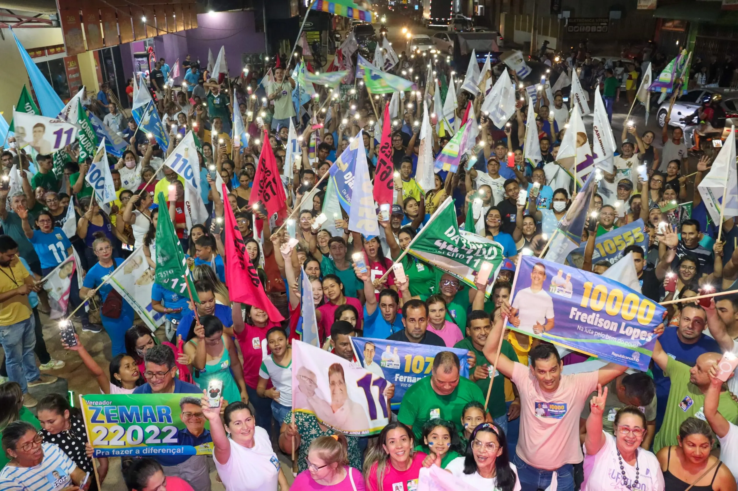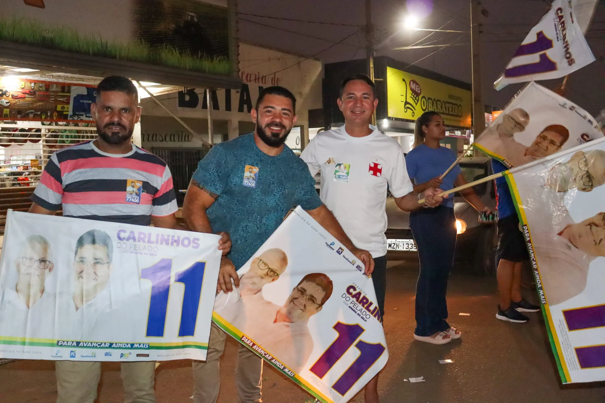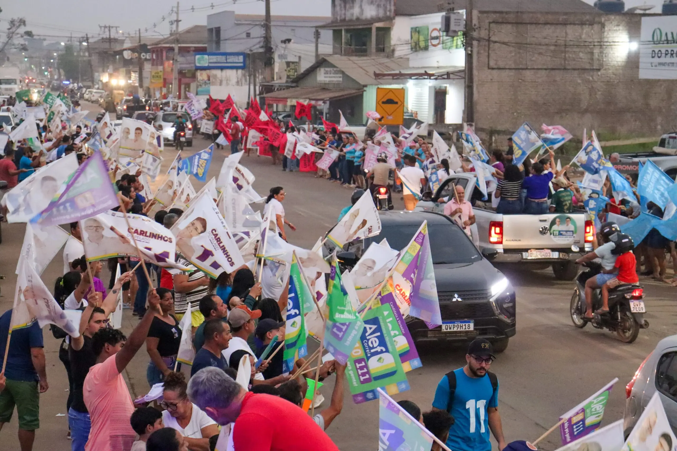 Mais de 1000 pessoas marcaram presença no Bandeiraço do 11, mostrando o apoio firme à candidatura de Carlinhos do Pelado e Amaral do Gelo/Foto: Ascom