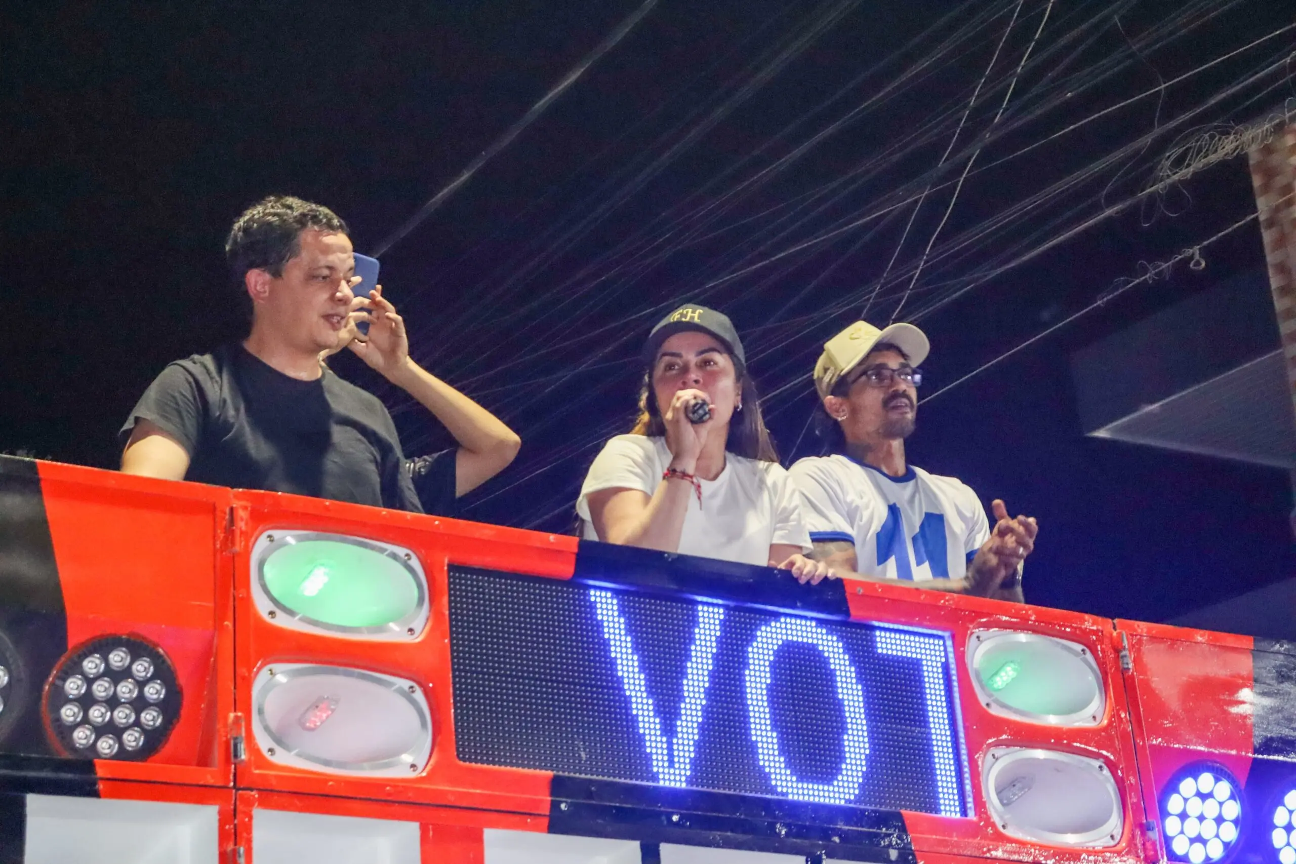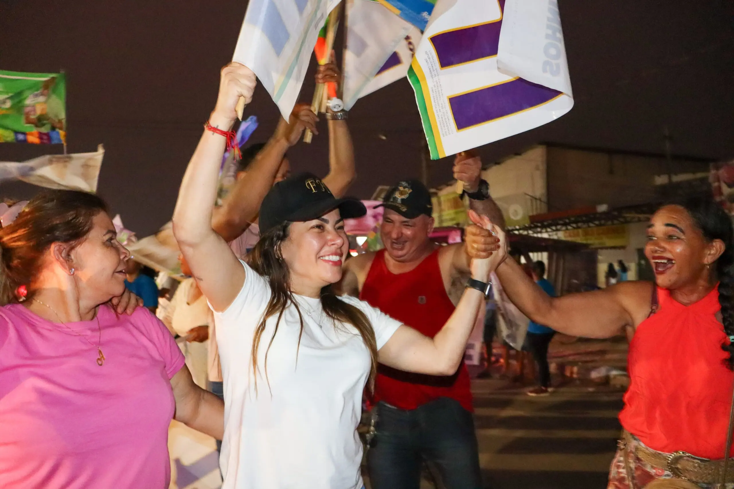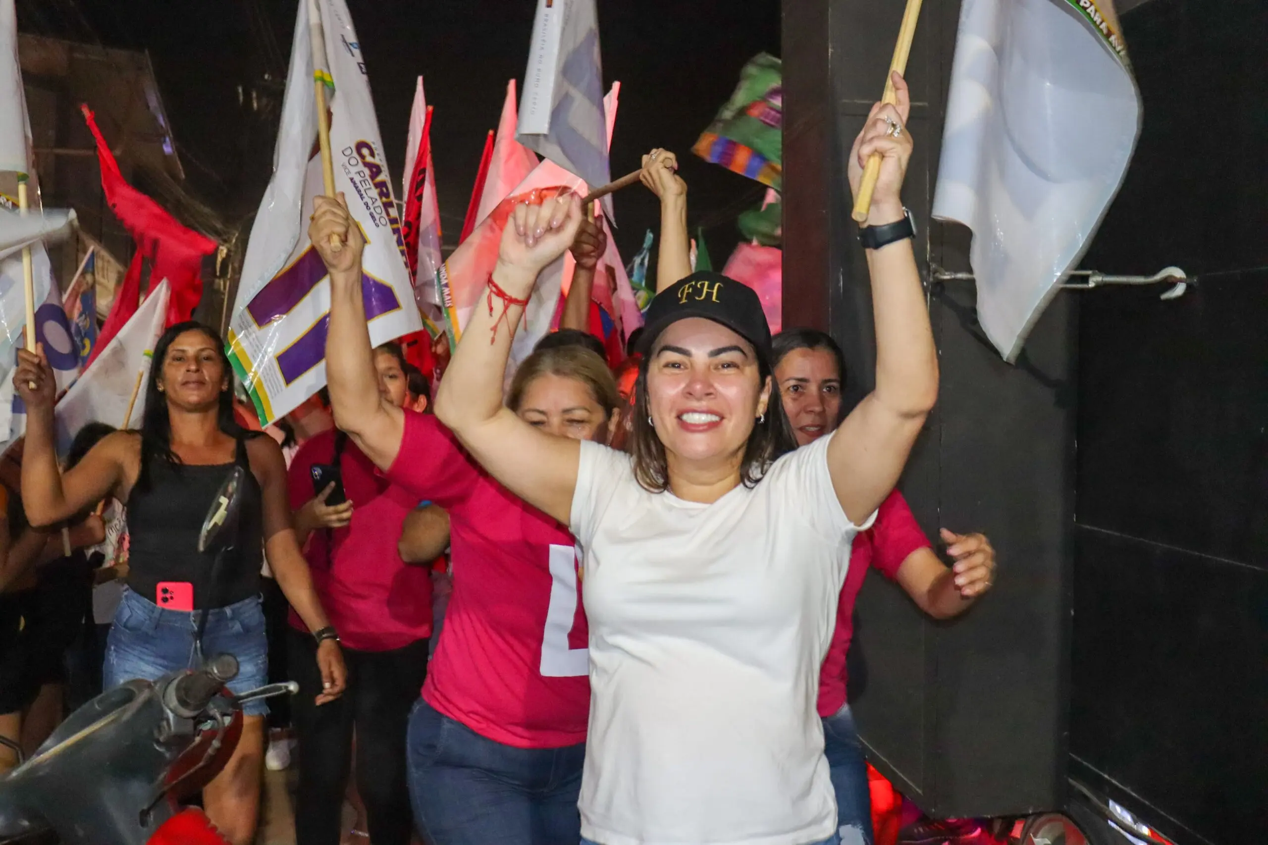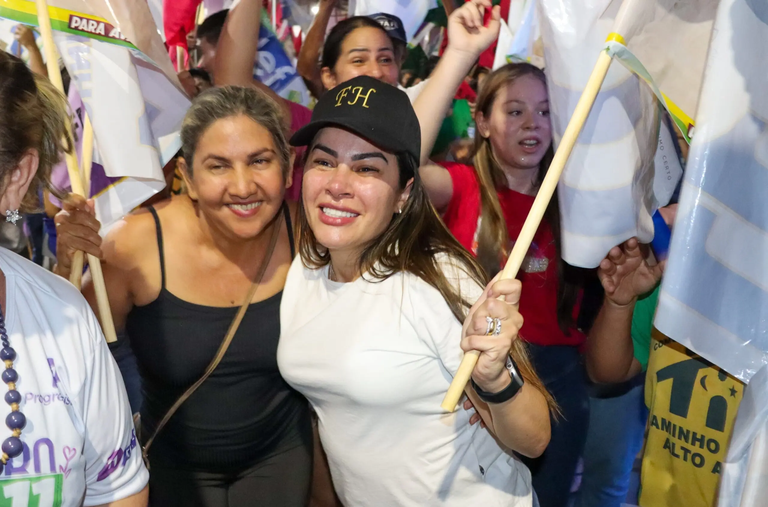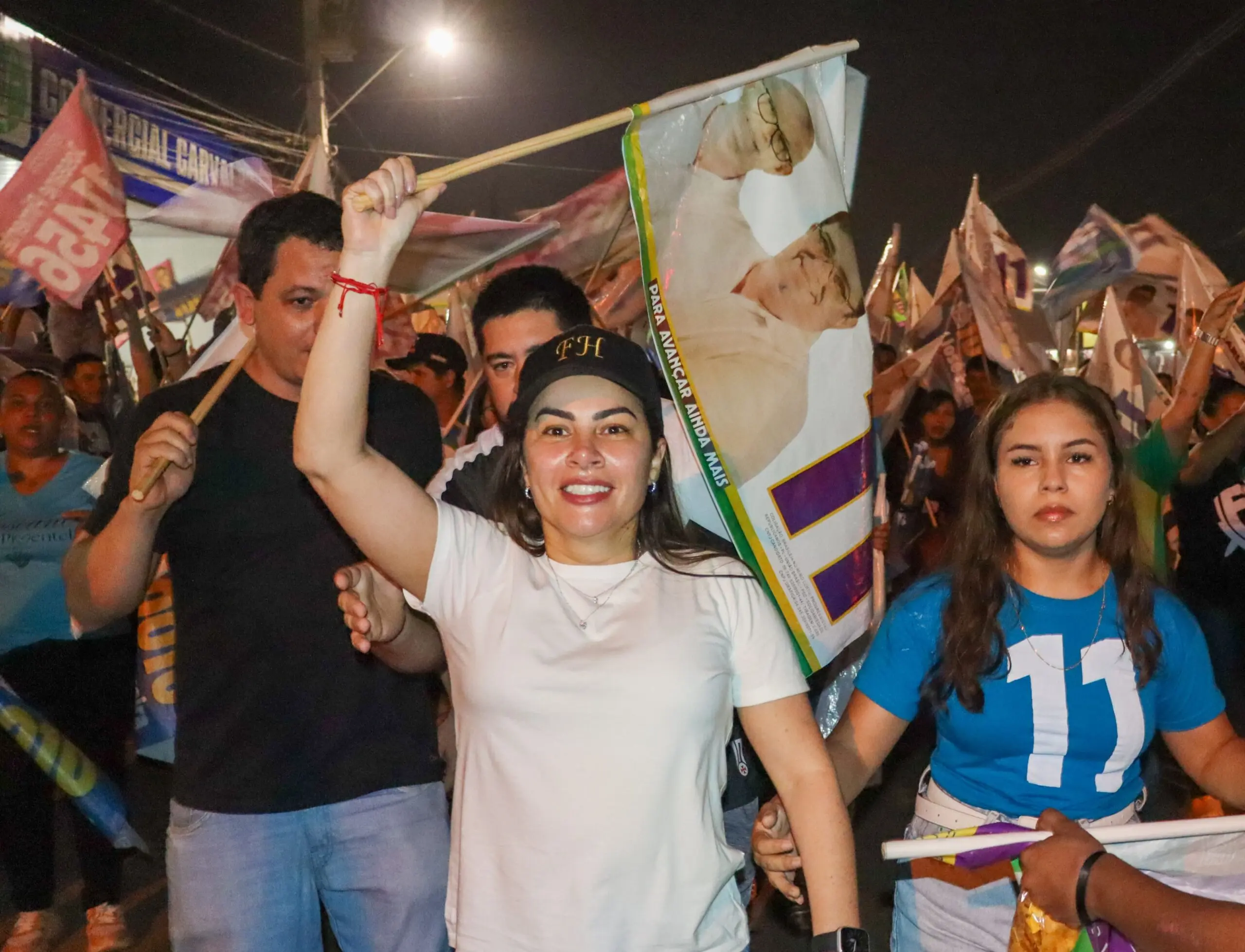 “A gente tá mostrando como é que se faz uma campanha linda, a campanha do respeito. Sabe por que a população respeita a gente? Por que a gente trabalhou, e a gente vai vencer as eleições se Deus quiser e a vontade do povo também…O nosso bandeiraço foi lindo, mais de 1000 pessoas presentes”, disse Fernanda ao agradecer aos candidatos a vereadores ali presentes.