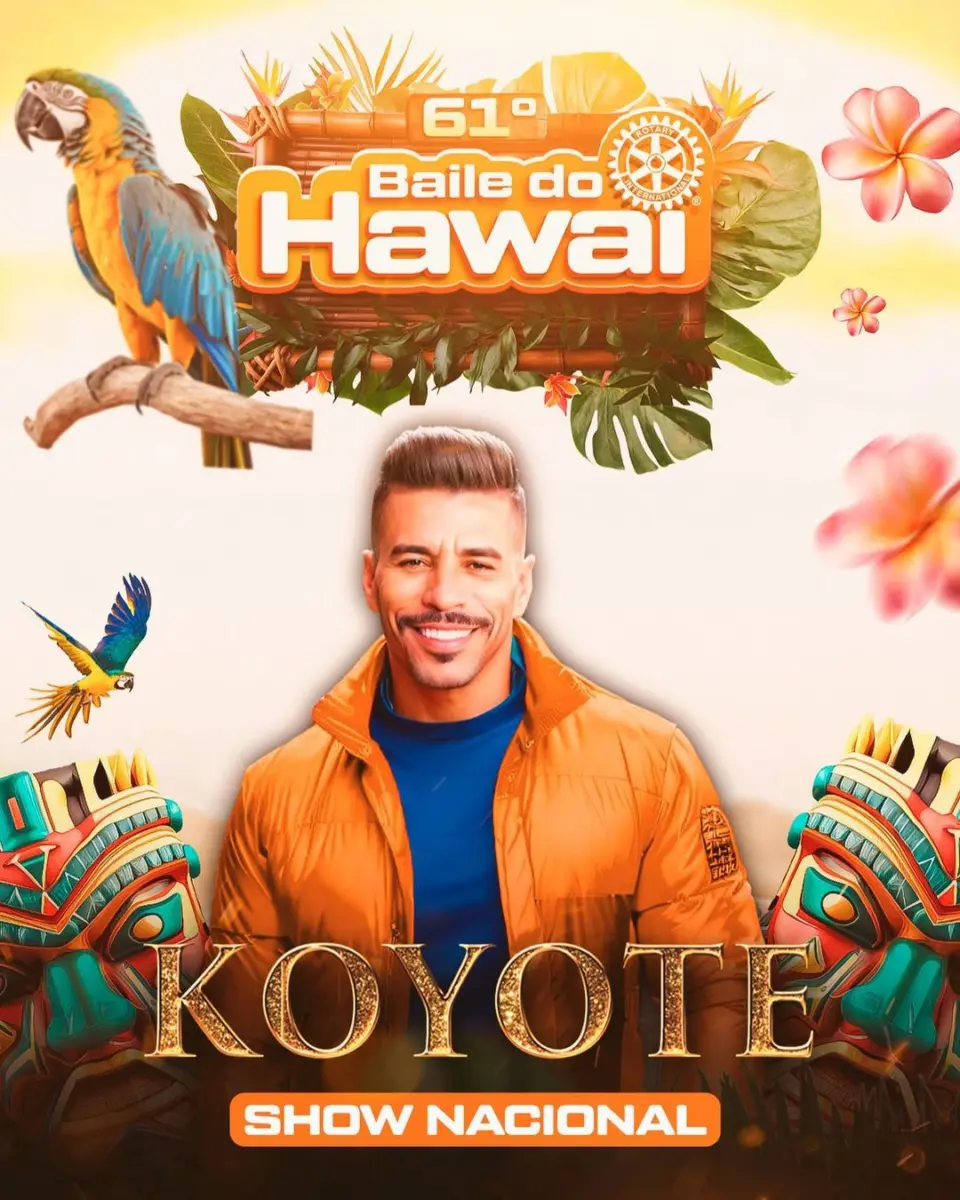 “É com grande entusiasmo que convido todos para a 61ª edição do Baile do Hawai do Rotary, que contará com a presença do cantor Koyote e outras atrações incríveis. Este evento não é apenas uma festa, mas uma oportunidade de contribuir para ações sociais que ajudam nossas comunidades menos favorecidas. Espero todos vocês no dia 9 de novembro, na Maison Borges!”