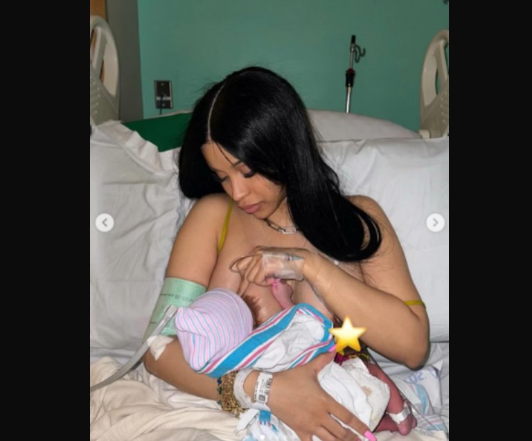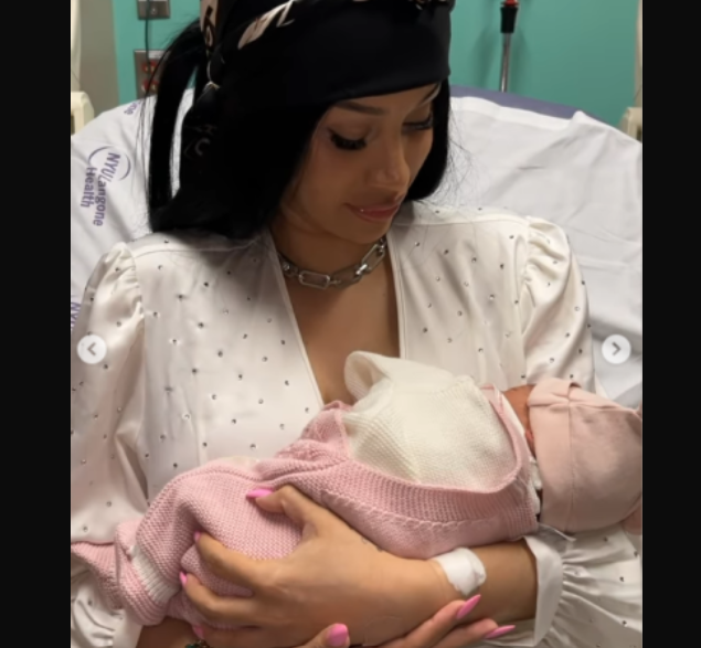 Cheia de orgulho, Cardi B publicou fotos de sua filha recém-nascida no Instagram na tarde desta quinta (12).