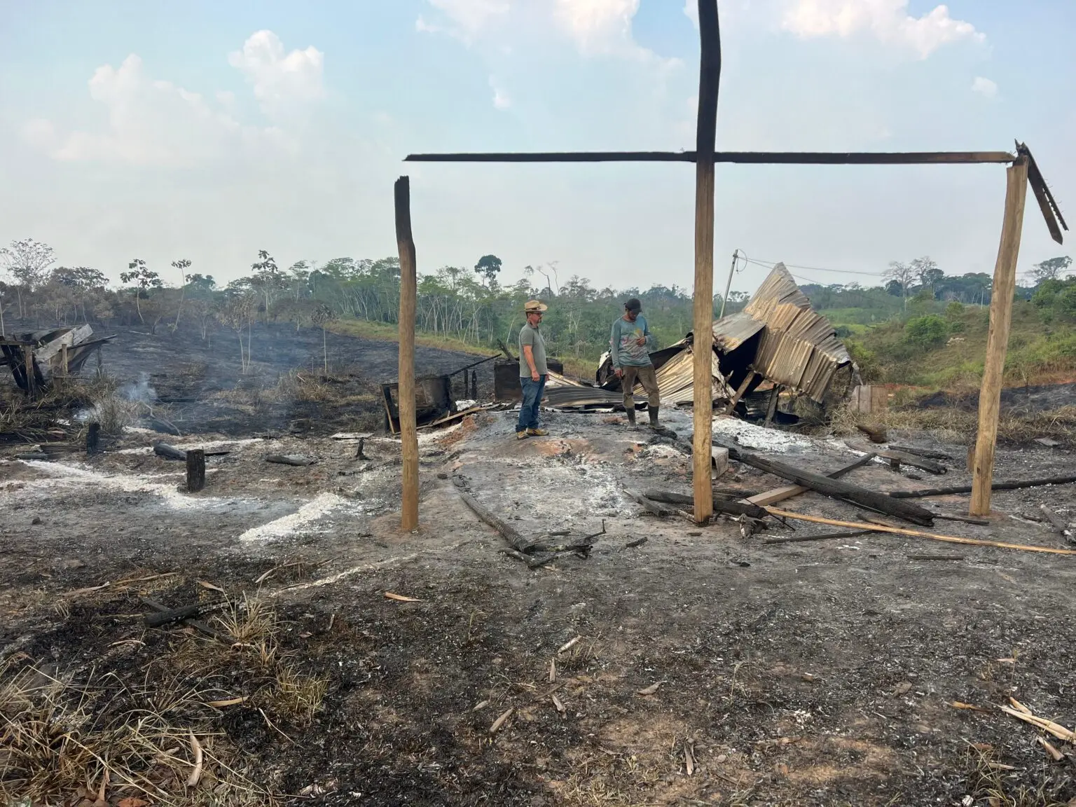 Incêndios na zona rural destruíram casa de farinha de morador/Foto: Reprodução/Jurua24horas