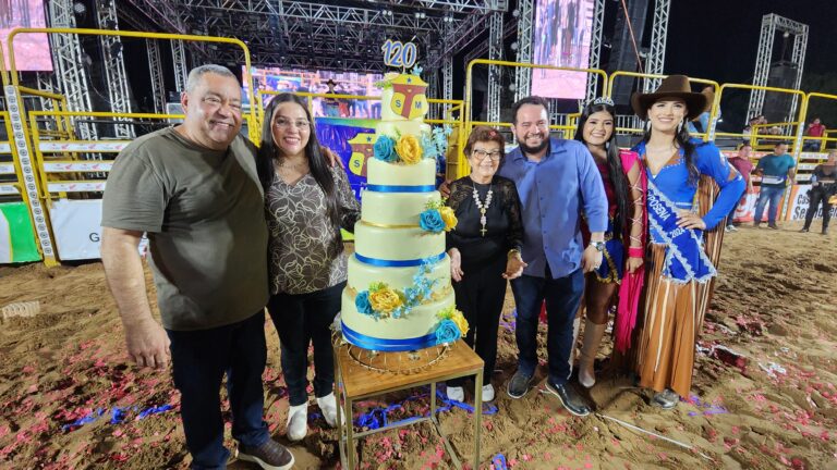 Os parabéns teve direito a bolo gigante na última noite de Exposena/Foto: Juan Diaz/ContilNet