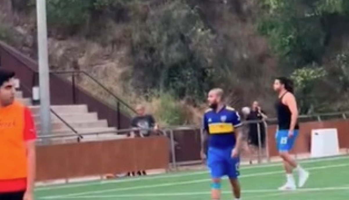 O jogador brasileiro, Daniel Alves, foi visto enquanto participava de uma partida de futebol amador em Barcelon/Foto: Reprodução