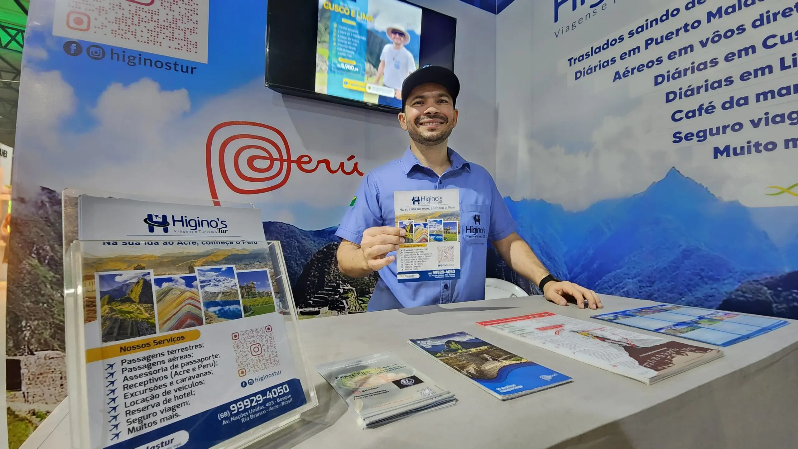 Na Expoacre, a Higino’s Tur apresenta os pacotes e todos os serviços disponíveis para a população no Espaço Internacional, onde estão empreendedores do Peru e da Bolívia.