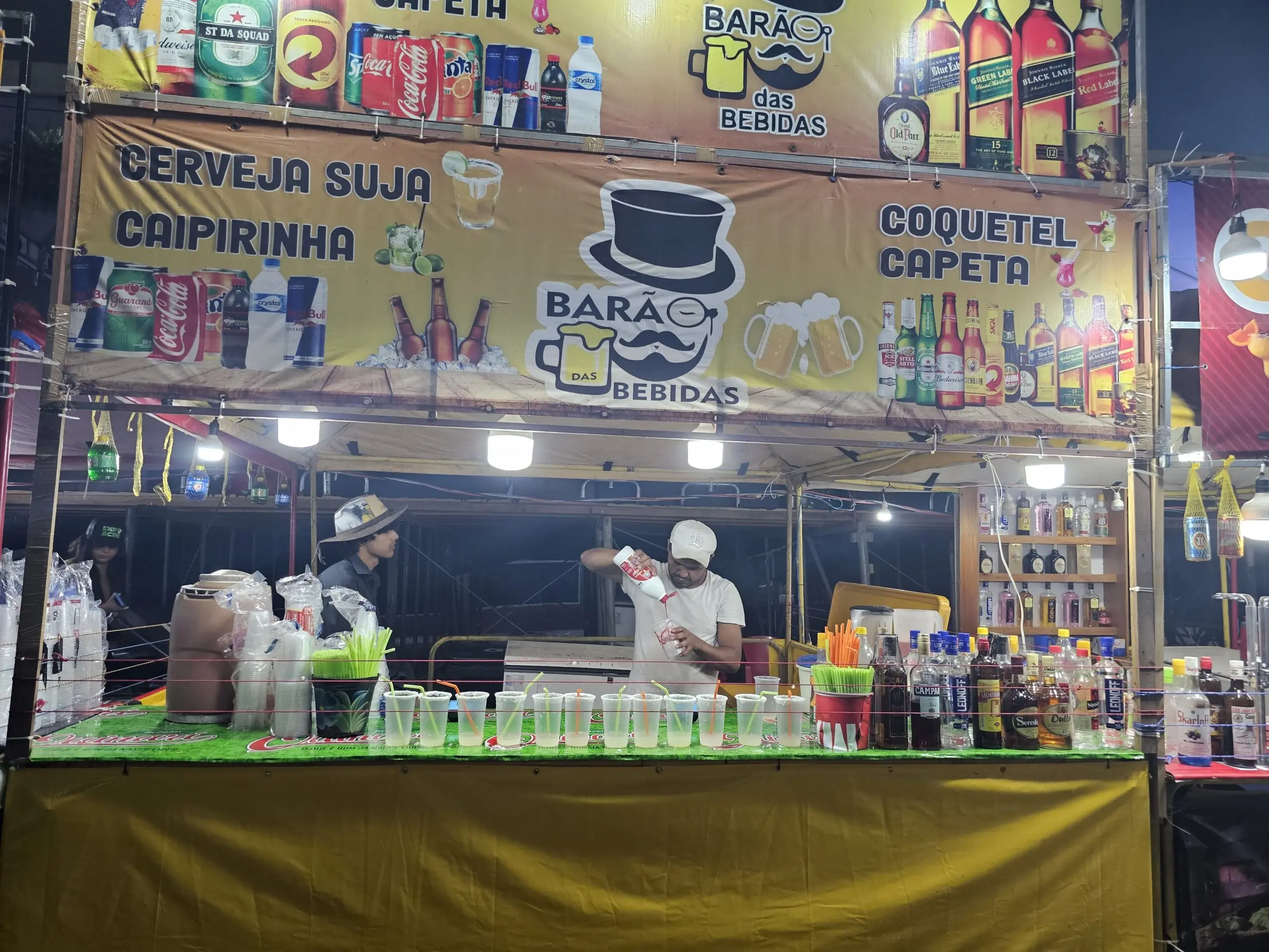 Além do Capeta, a barraca oferece uma seleção de bebidas para todos os gostos, desde uísques e coquetéis até cachaças artesanais.