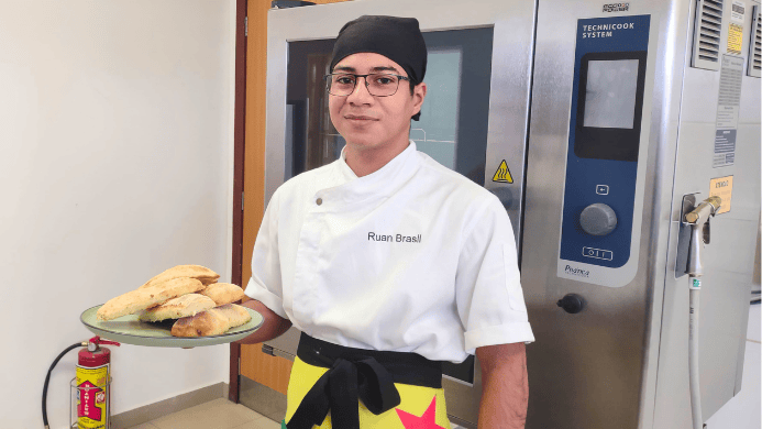 Natural de Rio Branco e formado em Gastronomia em 2022, o gastrólogo, que tem 26 anos, iniciou sua carreira na panificação aos 17 como menor aprendiz em uma rede de supermercados de Rio Branco, exercendo a função de auxiliar de padeiro. “Saí do ensino médio sem saber o que fazer, não sabia que a gastronomia ia ser algo para a vida toda”, relembra Ruan.