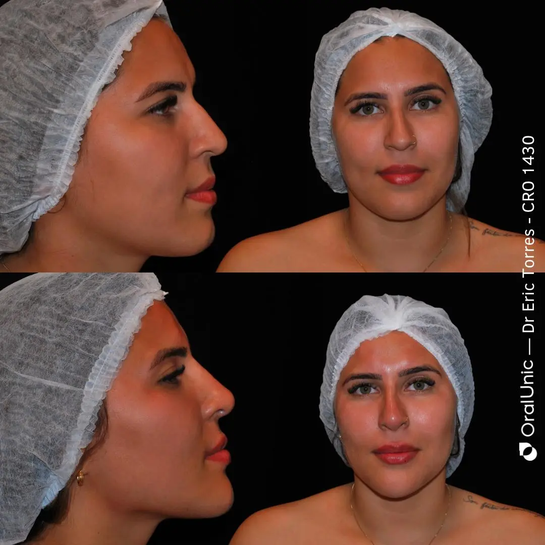Segundo o dentista Eric Torres, proprietário da clínica, o procedimento começou com uma delicada correção no nariz, visando aprimorar sua harmonia facial.