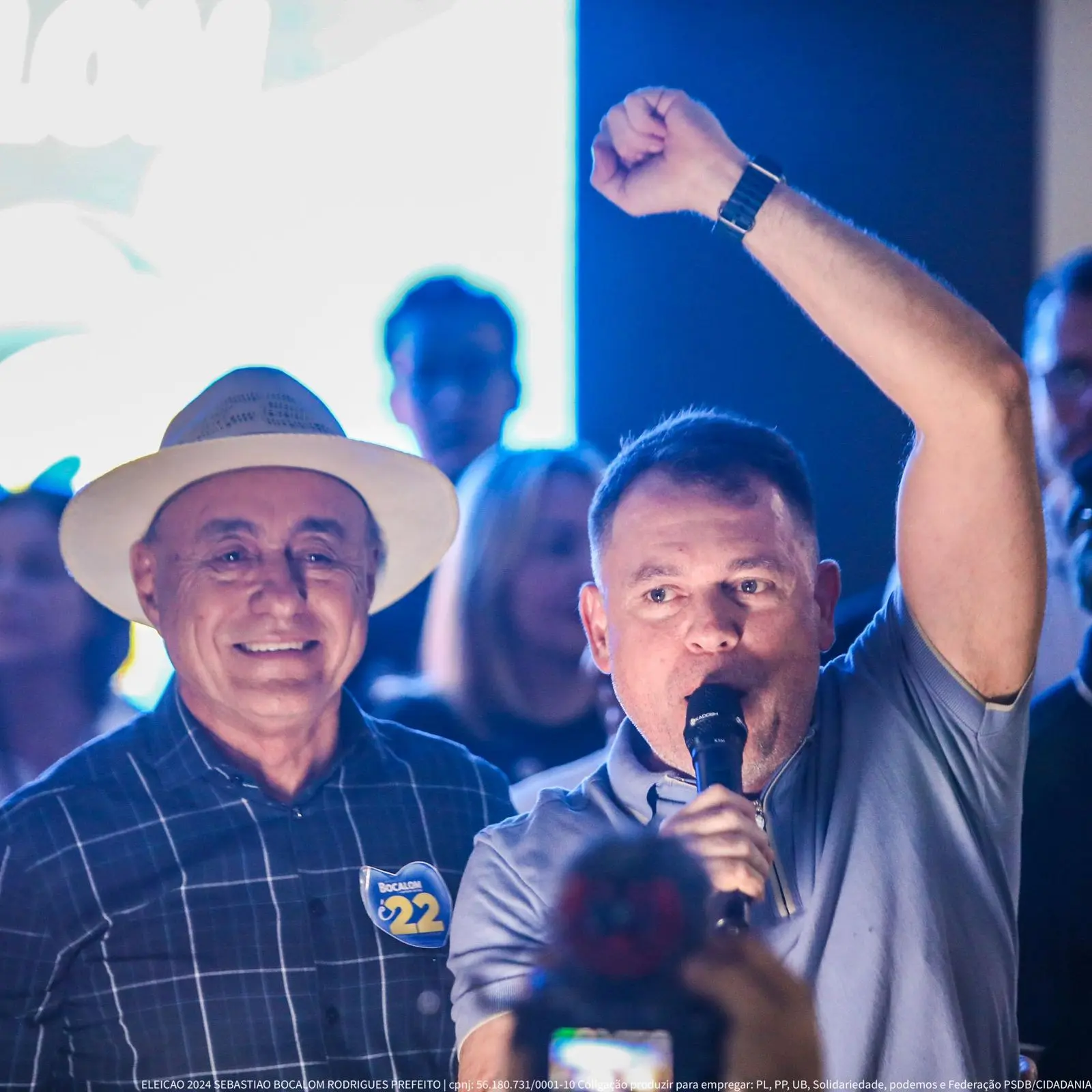 Durante seu discurso, Bocalom destacou o compromisso com a continuidade de seu trabalho e agradeceu o apoio popular recebido/Foto: Ascom