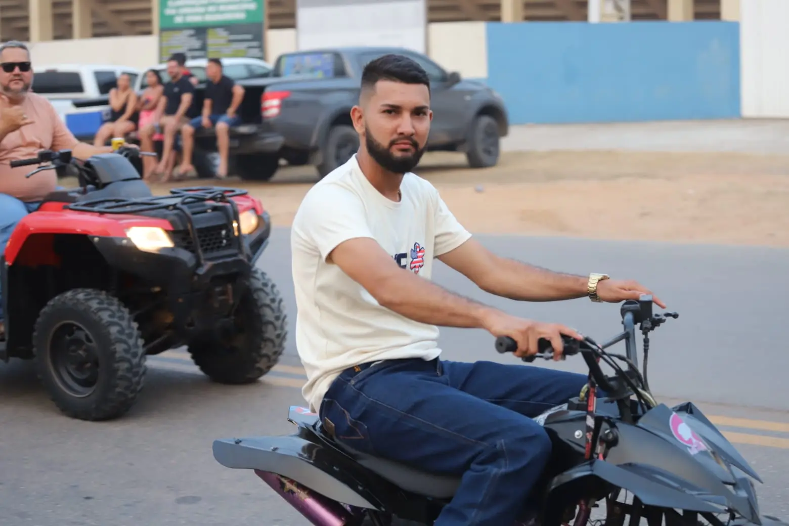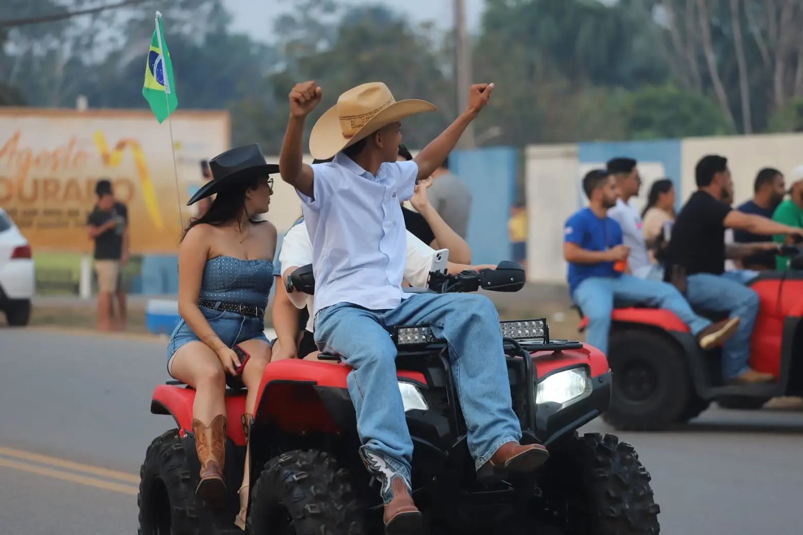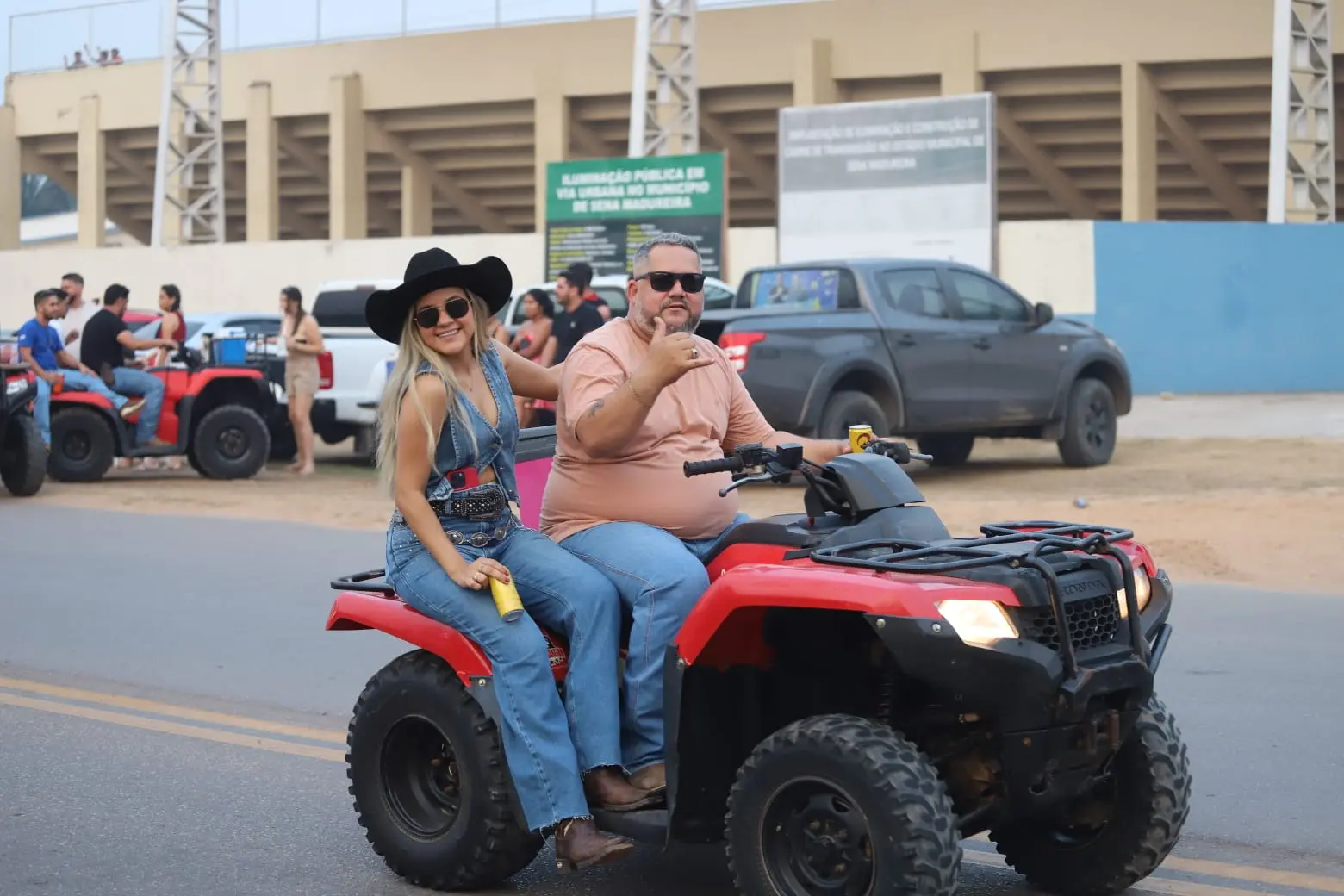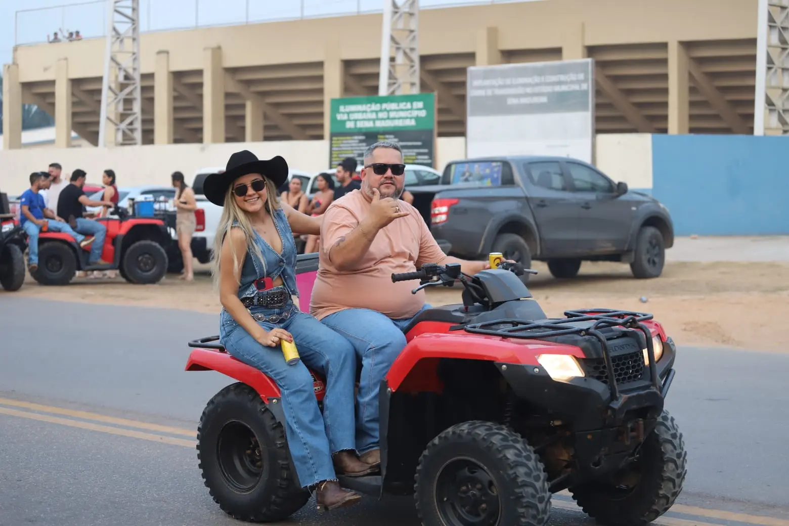 Uma fila quilométrica formada por carros e quadriciclos foi registrada no evento.